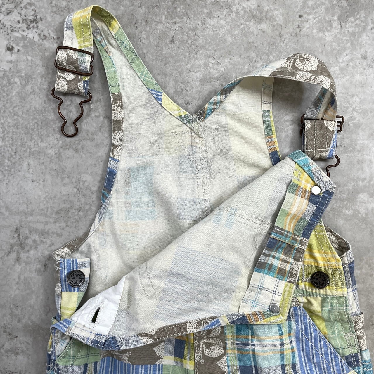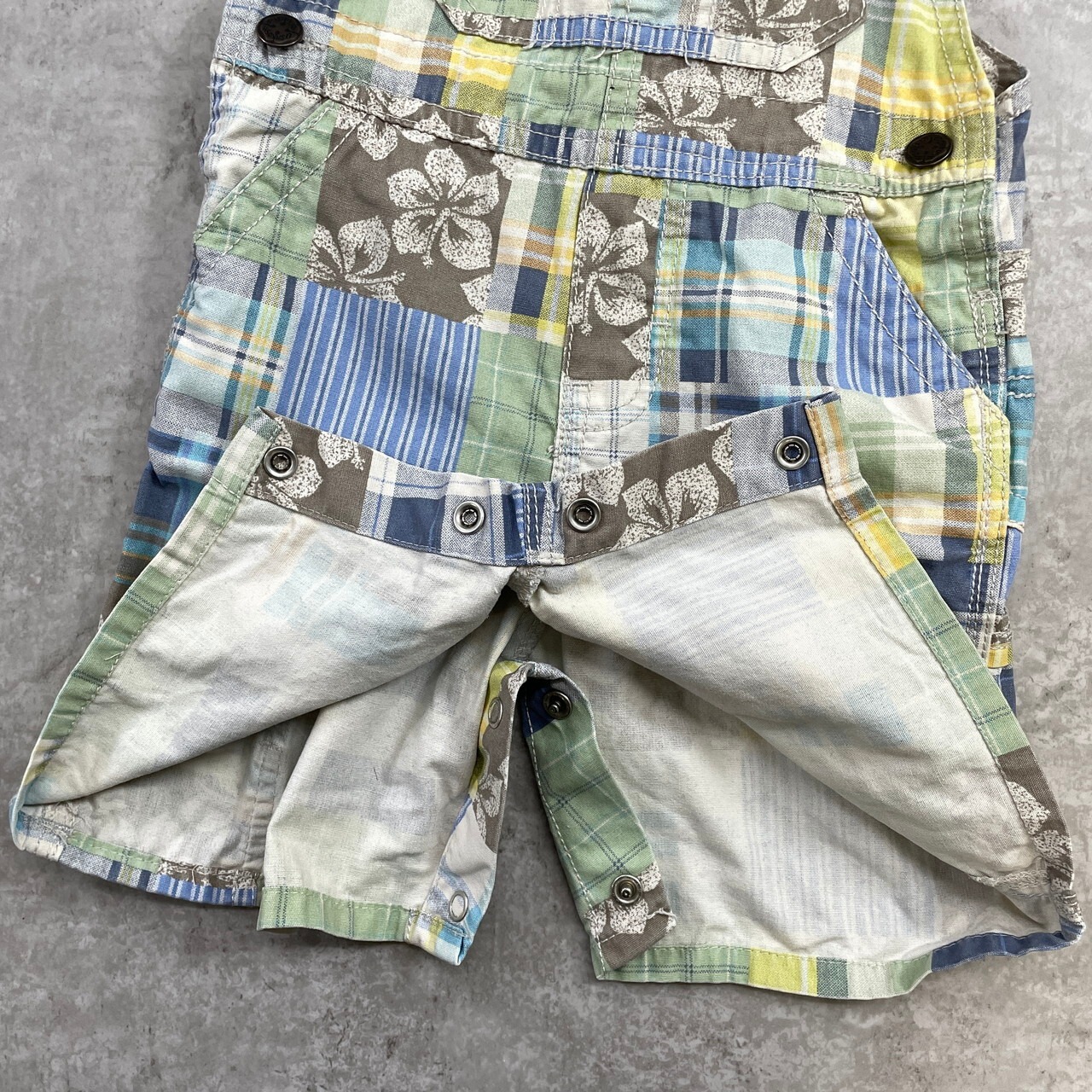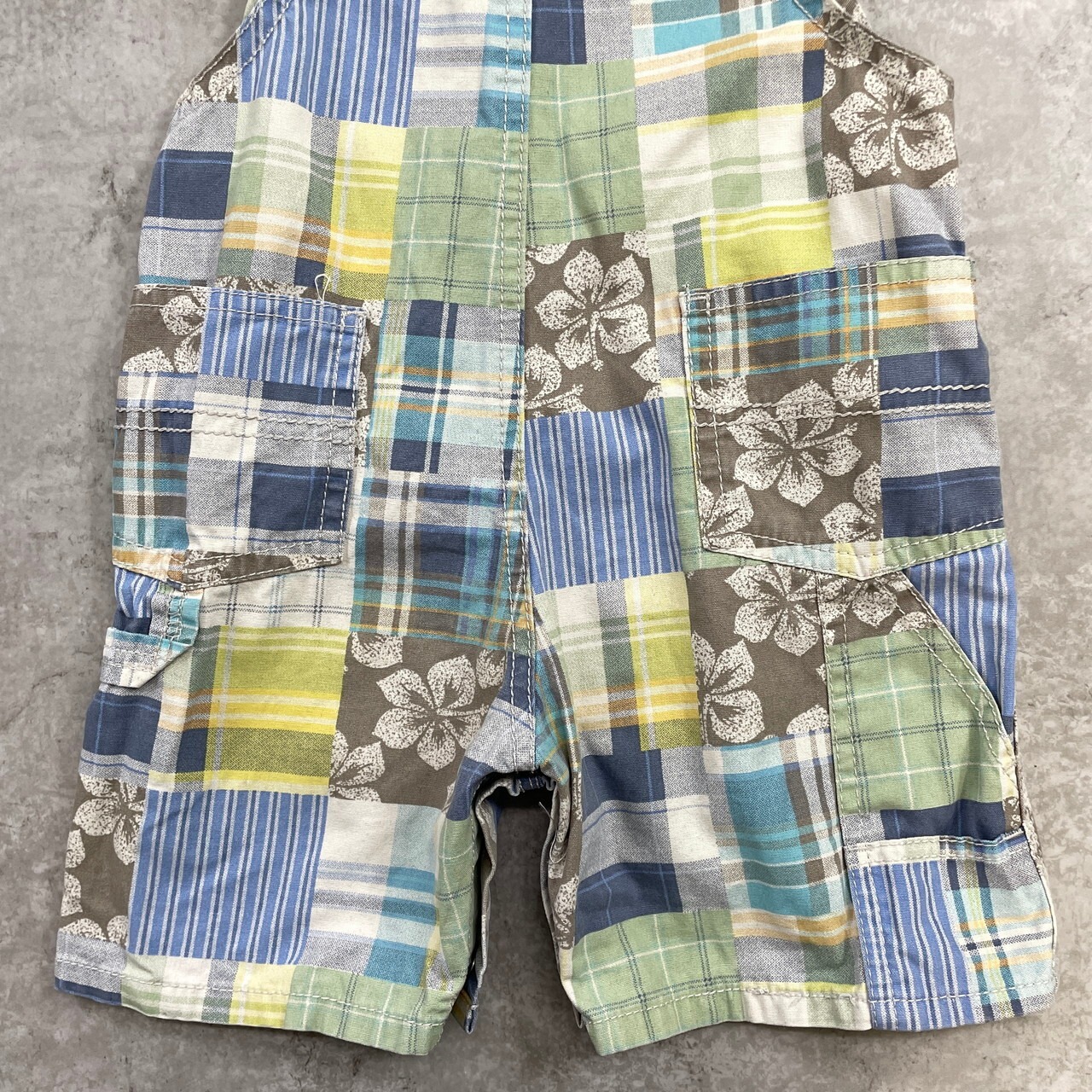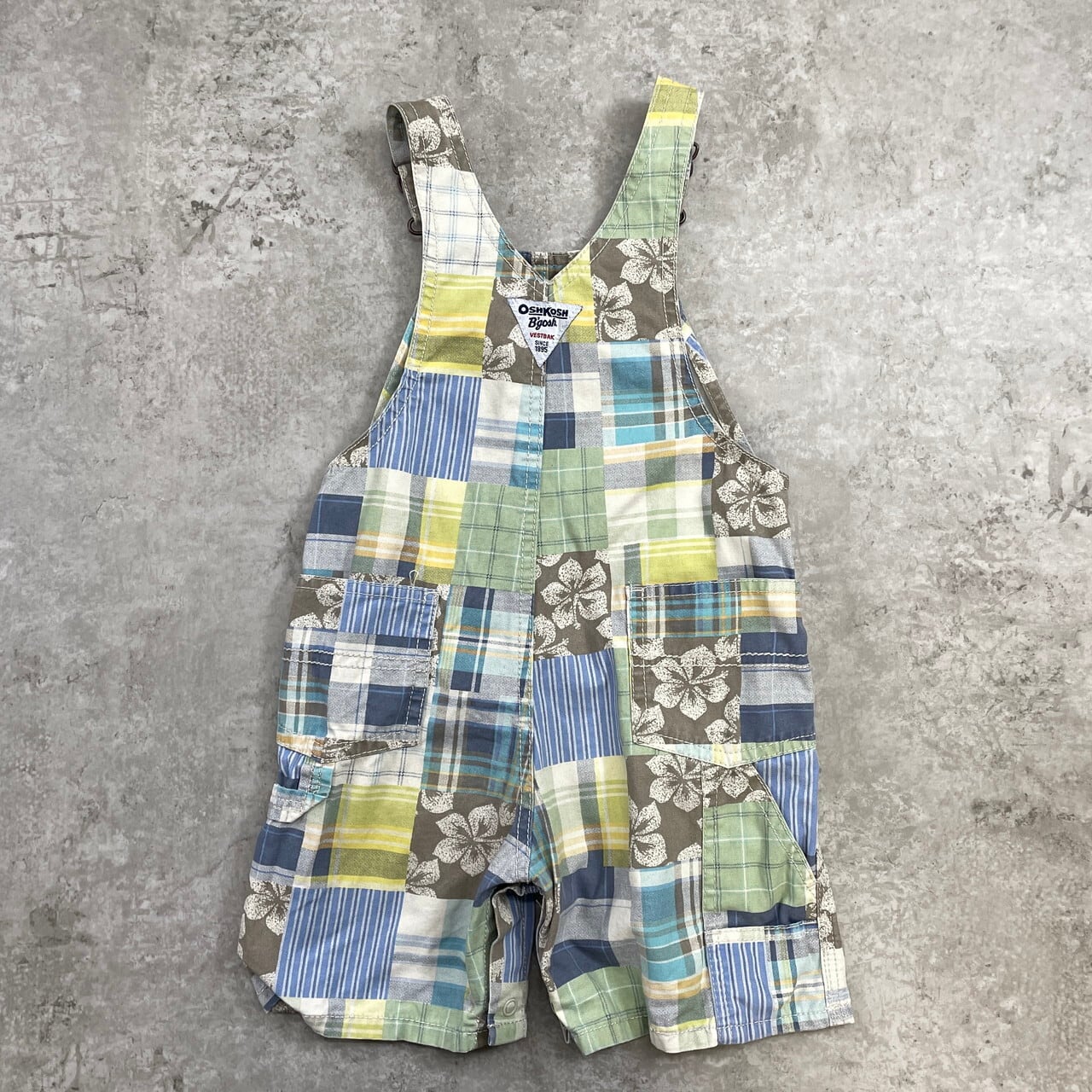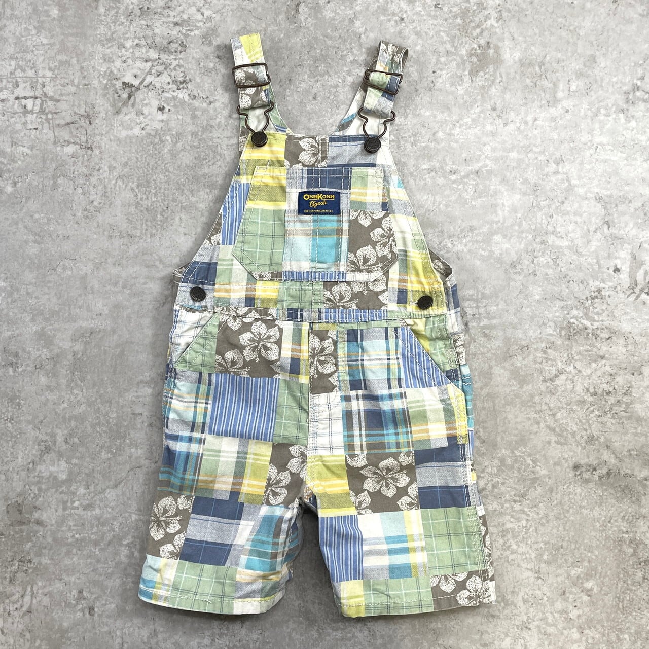 ■【kids】 OSHKOSH オシュコシュ パッチワーク オーバーオール ロンパース キッズ24ヵ月 90cm相当 古着 子供服 ベビー服 ショート丈【オーバーオール】/マルチカラー