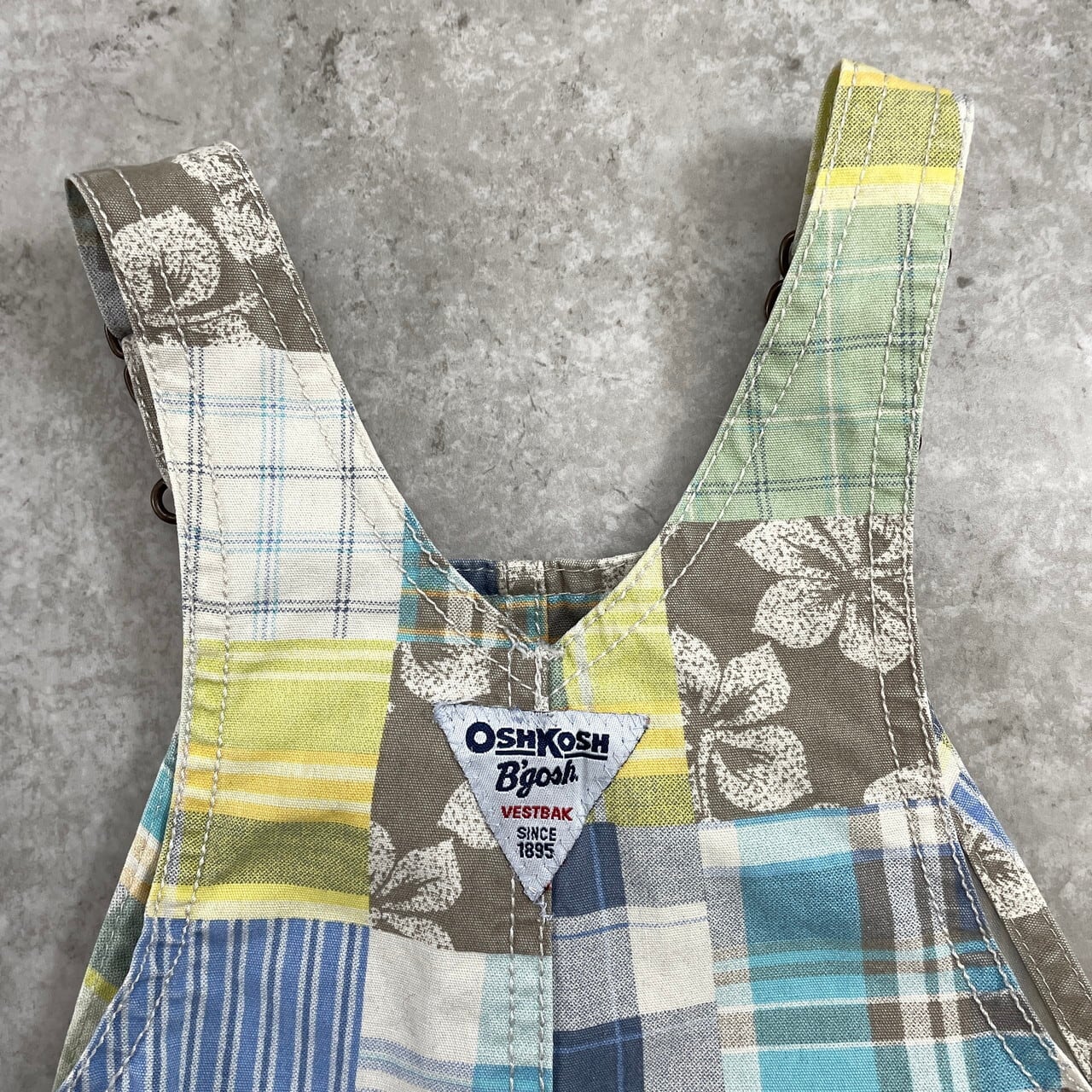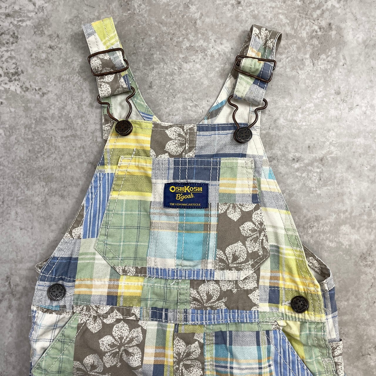 【kids】 OSHKOSH オシュコシュ パッチワーク オーバーオール ロンパース キッズ2歳 24ヵ月 90cm相当 古着 子供服 ベビー服 ショート丈 【オーバーオール】/マルチカラー