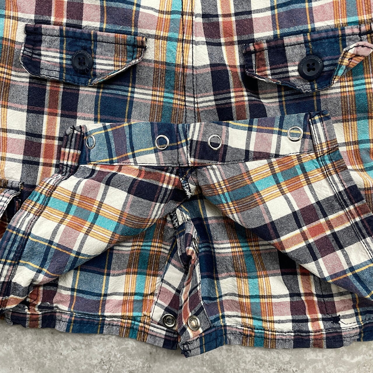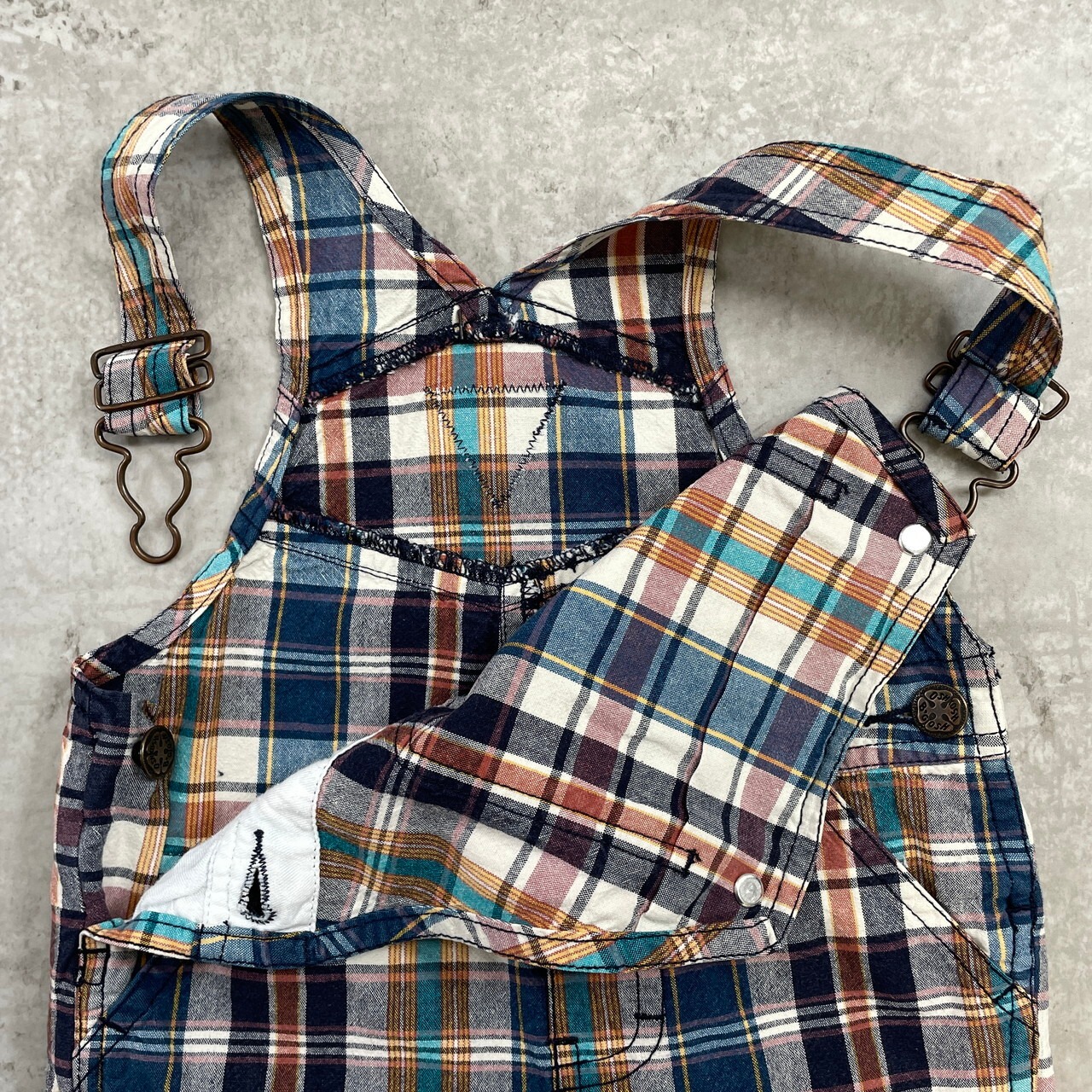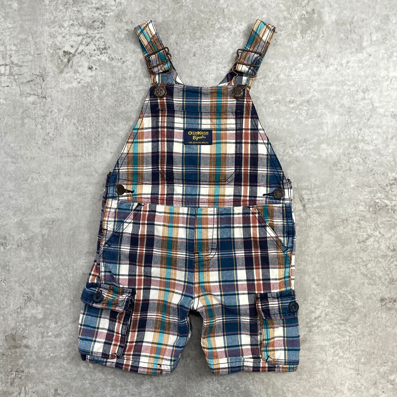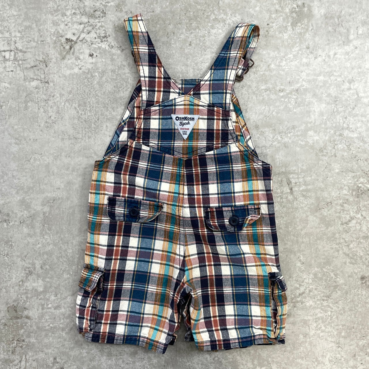 ■【kids】 OSHKOSH オシュコシュ マドラスチェック オーバーオール ロンパース キッズ18ヵ月 80cm相当 古着 カーゴパンツ仕様 子供服 ベビー服 ショート丈 【オーバーオール】/マルチカラー