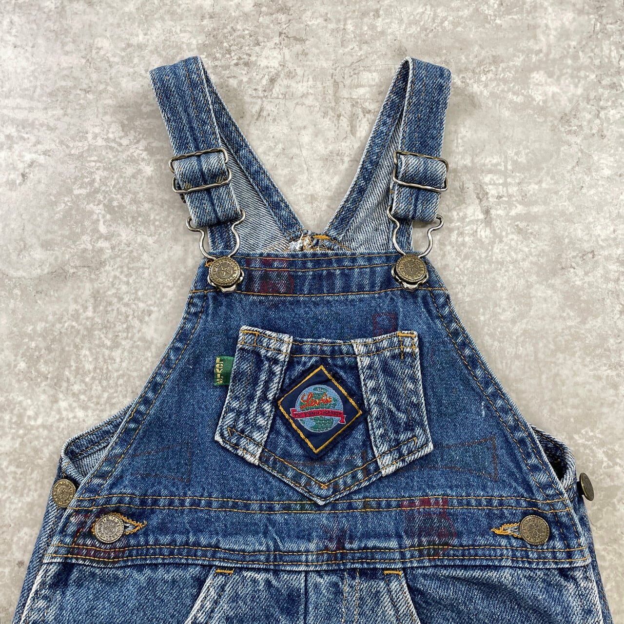 【kids】希少 90年代 USA製 Little Levi's リトルリーバイス 地球ロゴパッチ オーバーオール ロンパース キッズ2歳 90cm~相当 古着 90s VINTAGE 緑タブ ヴィンテージ 子供服 ベビー服 【オーバーオール】/ブルー