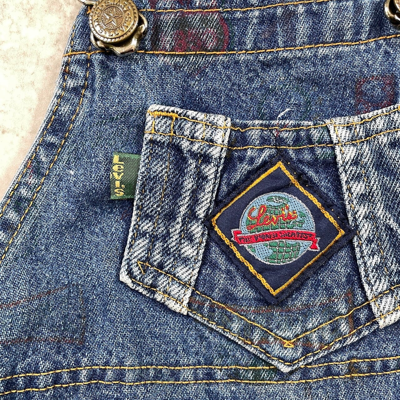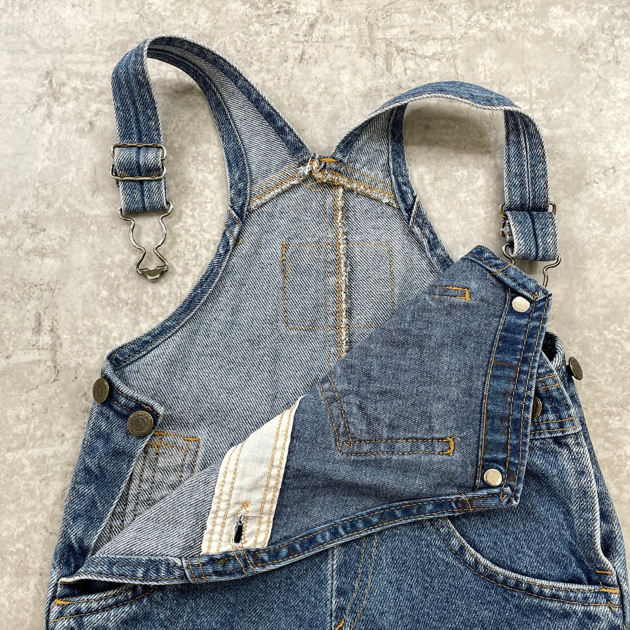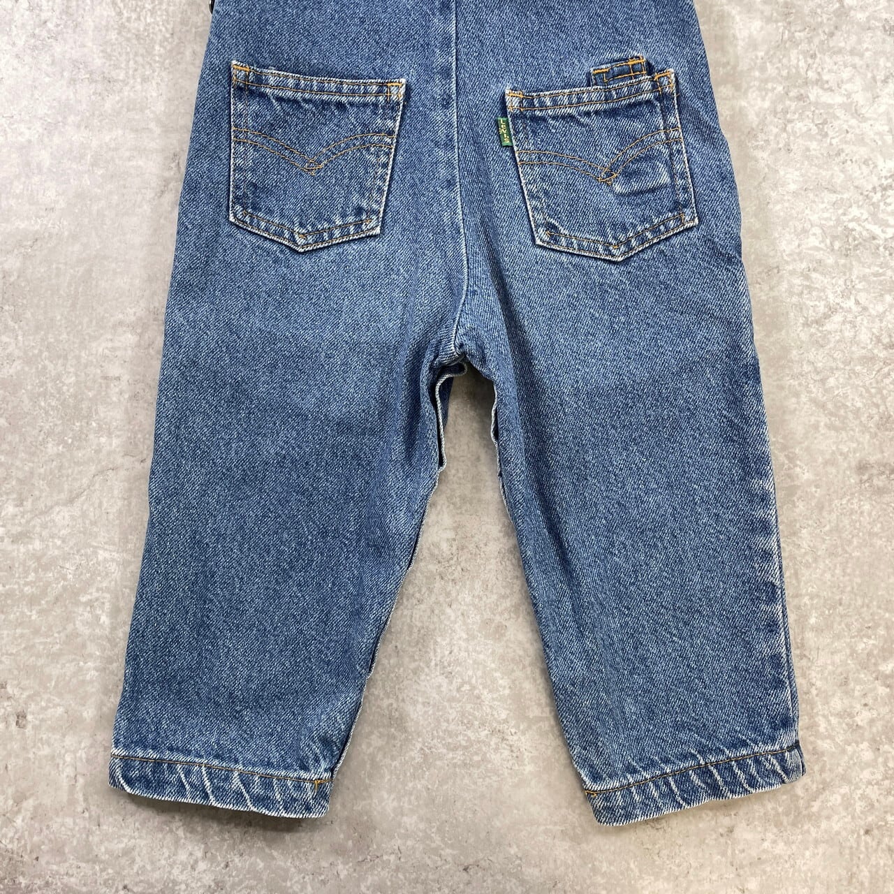■【kids】希少 90年代 USA製 Little Levi's リトルリーバイス 地球ロゴパッチ オーバーオール ロンパース キッズ2歳 90cm~相当 古着 90s VINTAGE 緑タブ ヴィンテージ 子供服 ベビー服 【オーバーオール】/ブルー