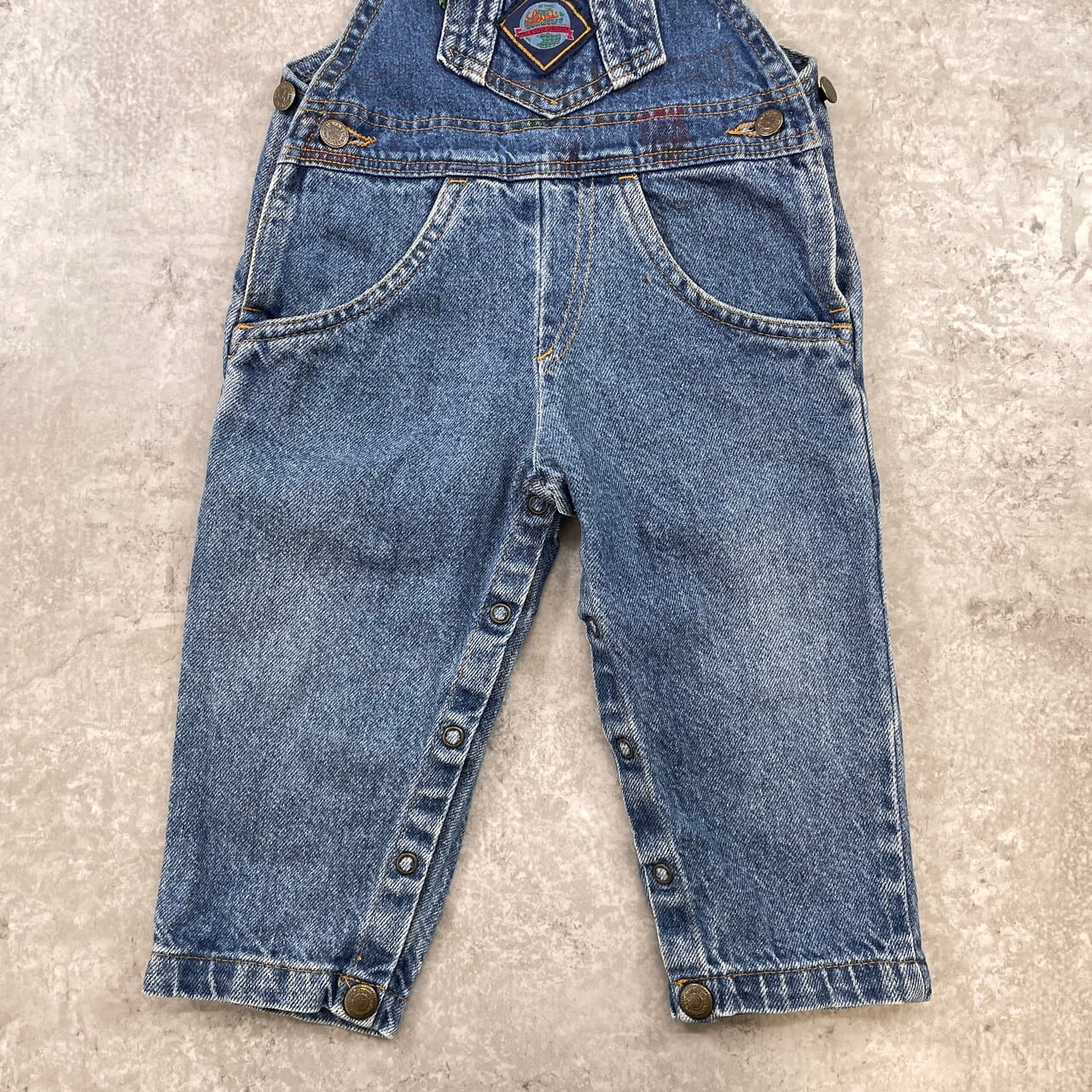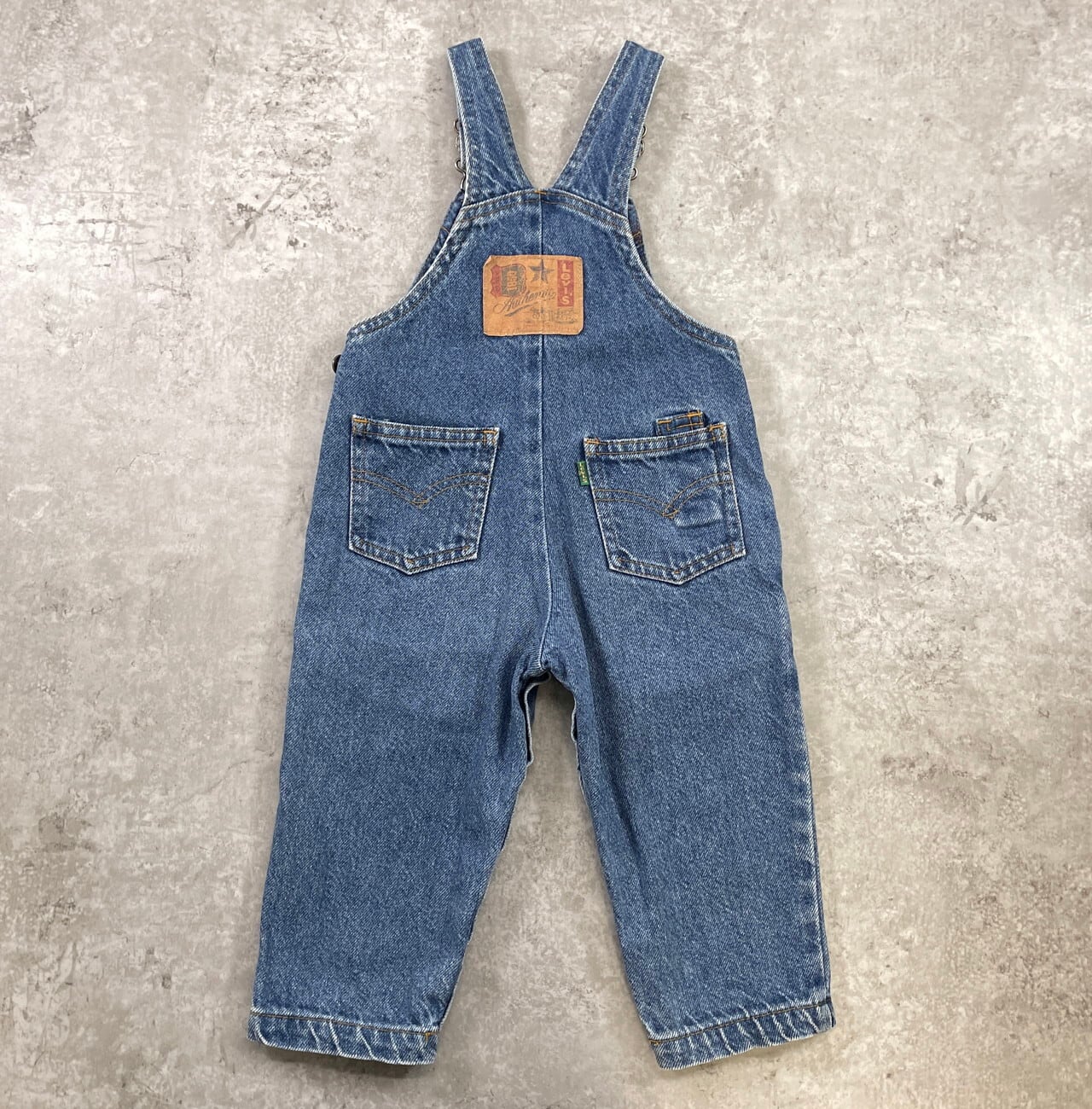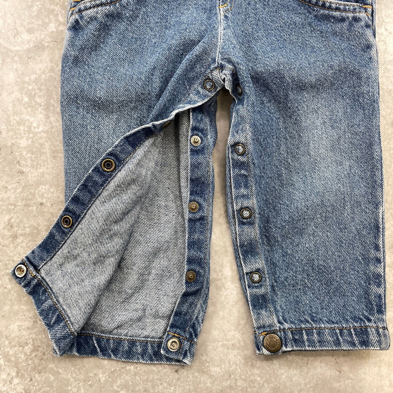 ■【kids】希少 90年代 USA製 Little Levi's リトルリーバイス 地球ロゴパッチ オーバーオール ロンパース キッズ2歳 90cm~相当 古着 90s VINTAGE 緑タブ ヴィンテージ 子供服 ベビー服 【オーバーオール】/ブルー