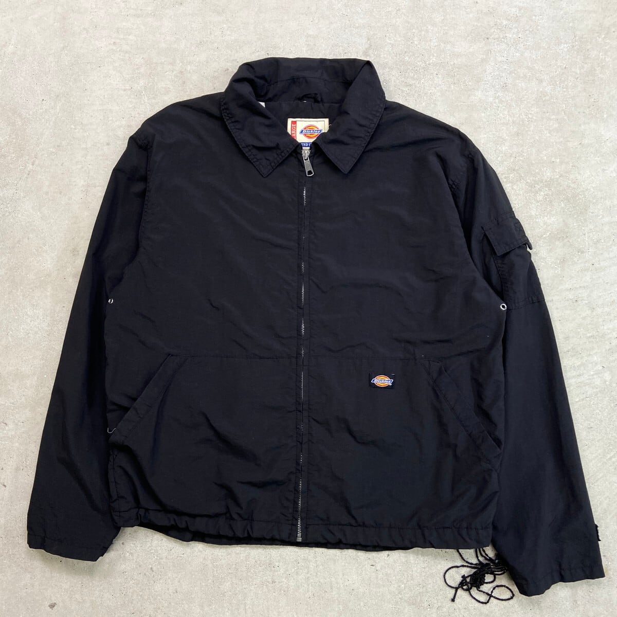 Dickies ディッキーズ ワンポイントロゴ刺繍 ナイロンジャケット メンズL 古着 アメカジ メッシュライナー 袖ポケット付き 裾ドローコード付き 黒色【P2603】【ナイロンジャケット】/ブラック