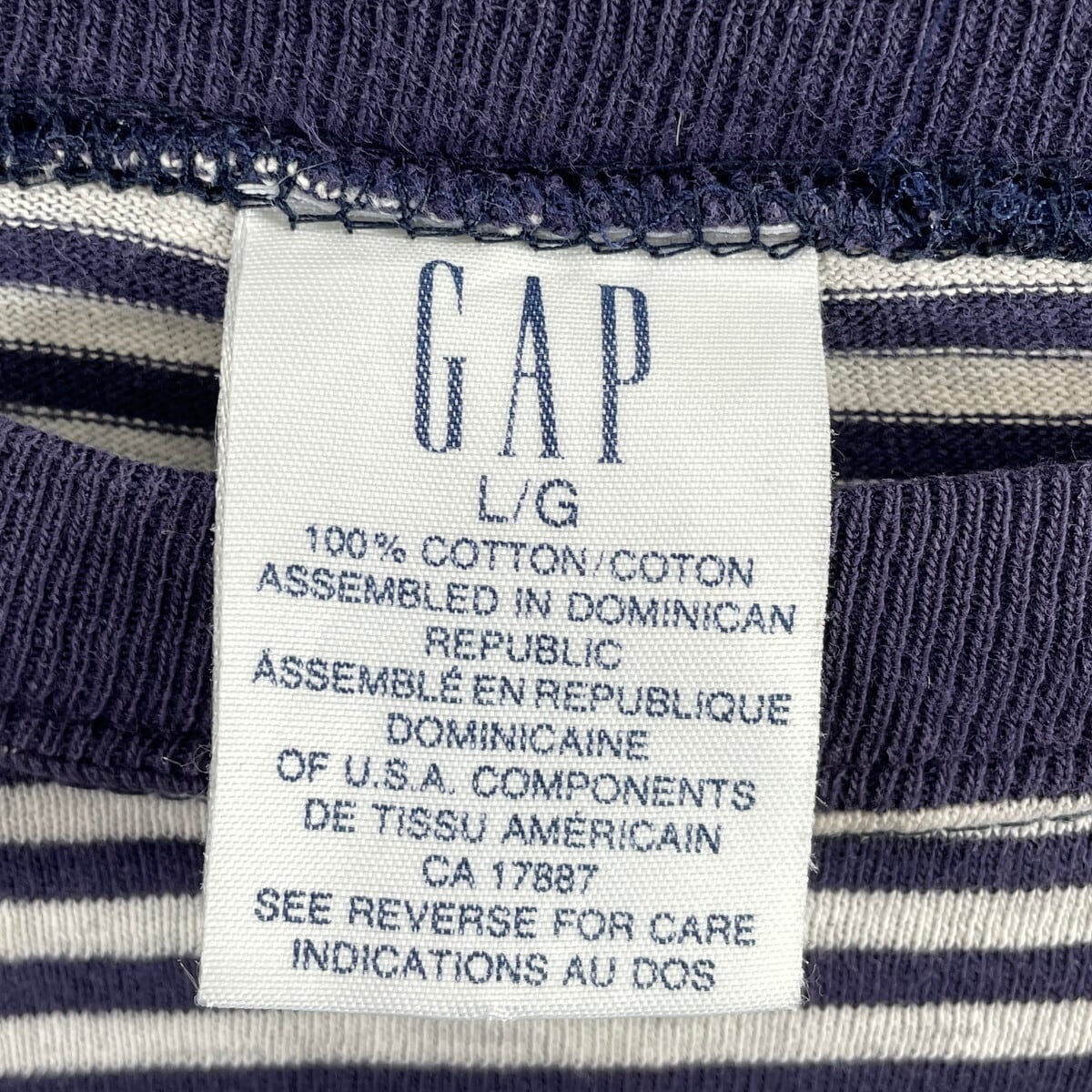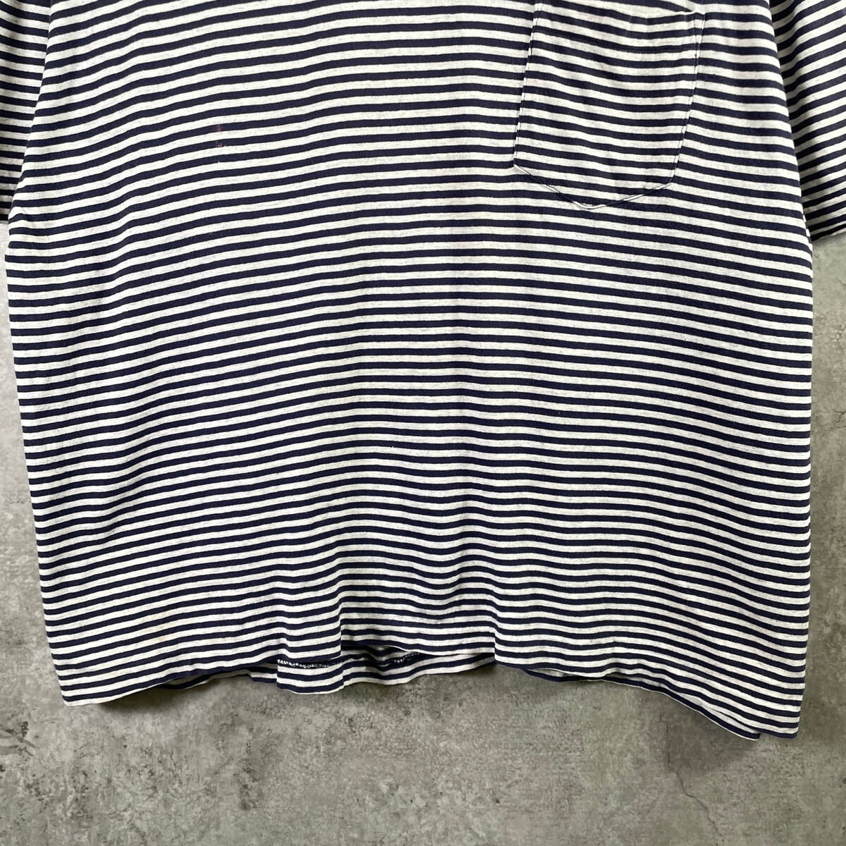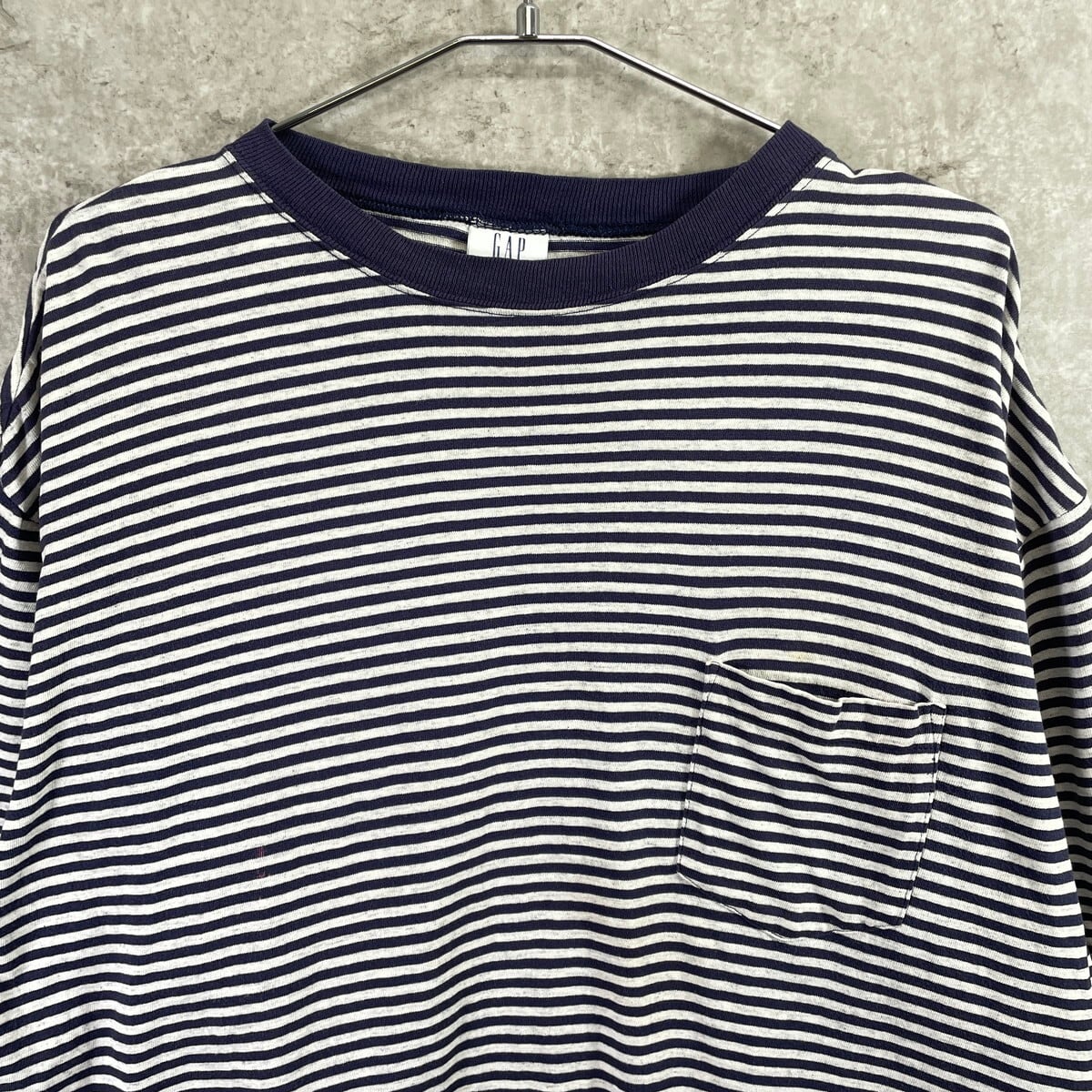 90年代 GAP オールドギャップ ボーダーTシャツ ポケT メンズL 古着 90s ヴィンテージ VINTAGE シングルステッチ ネイビー グレー【Tシャツ】/マルチカラー