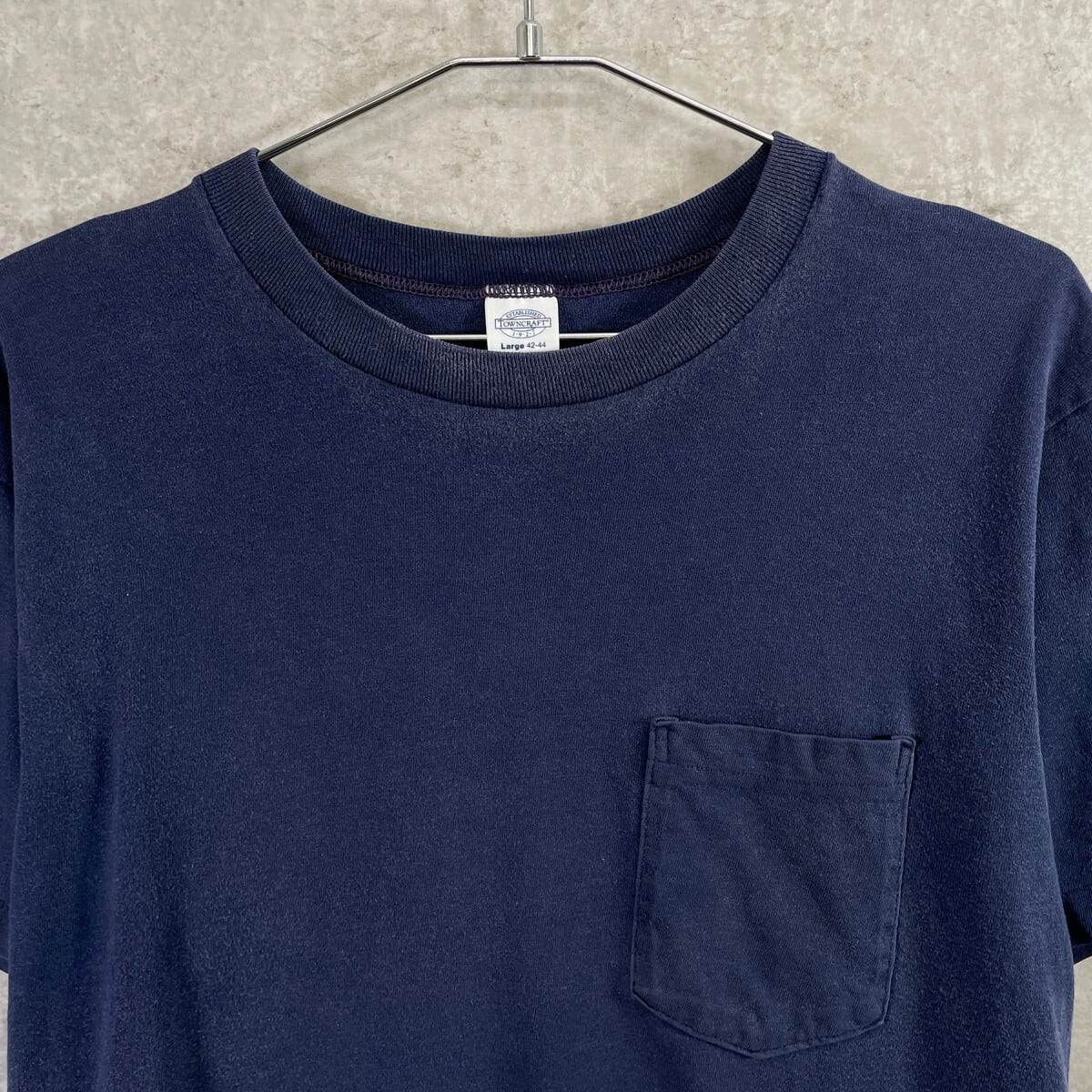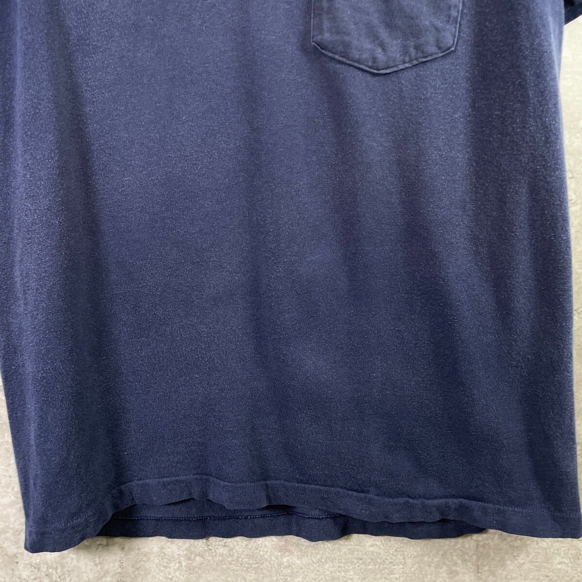 90年代 USA製 TOWNCRAFT タウンクラフト ブランク 耳付き ポケットTシャツ 無地T メンズS相当 古着 90s VINTAGE ヴィンテージ シングルステッチ ポケT 紺色【Tシャツ】/ネイビー