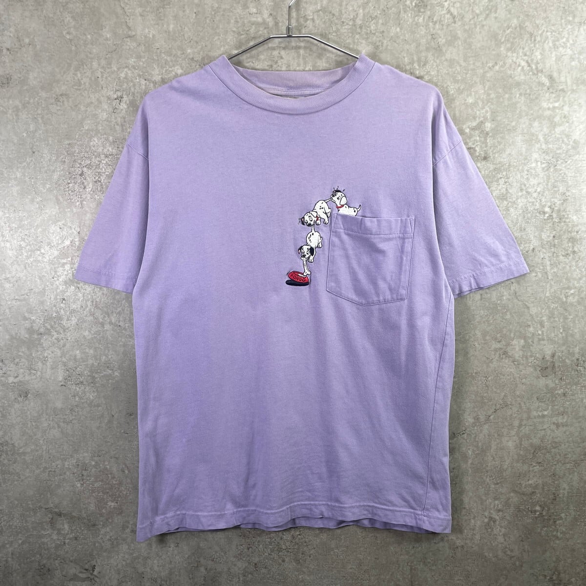 ■Disney ディズニー 101匹わんちゃん キャラクター刺繍 ポケTシャツ メンズS~M相当 レディースM 古着 101 Dalmatians ムービー 映画 アニメ 胸ポケ ラベンダー色【Tシャツ】/パープル