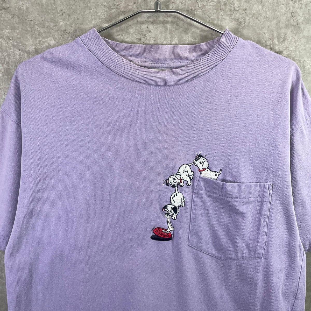 Disney ディズニー 101匹わんちゃん キャラクター刺繍 ポケTシャツ メンズS~M相当 レディースM 古着 101 Dalmatians ムービー 映画 アニメ 胸ポケ ラベンダー色【Tシャツ】/パープル