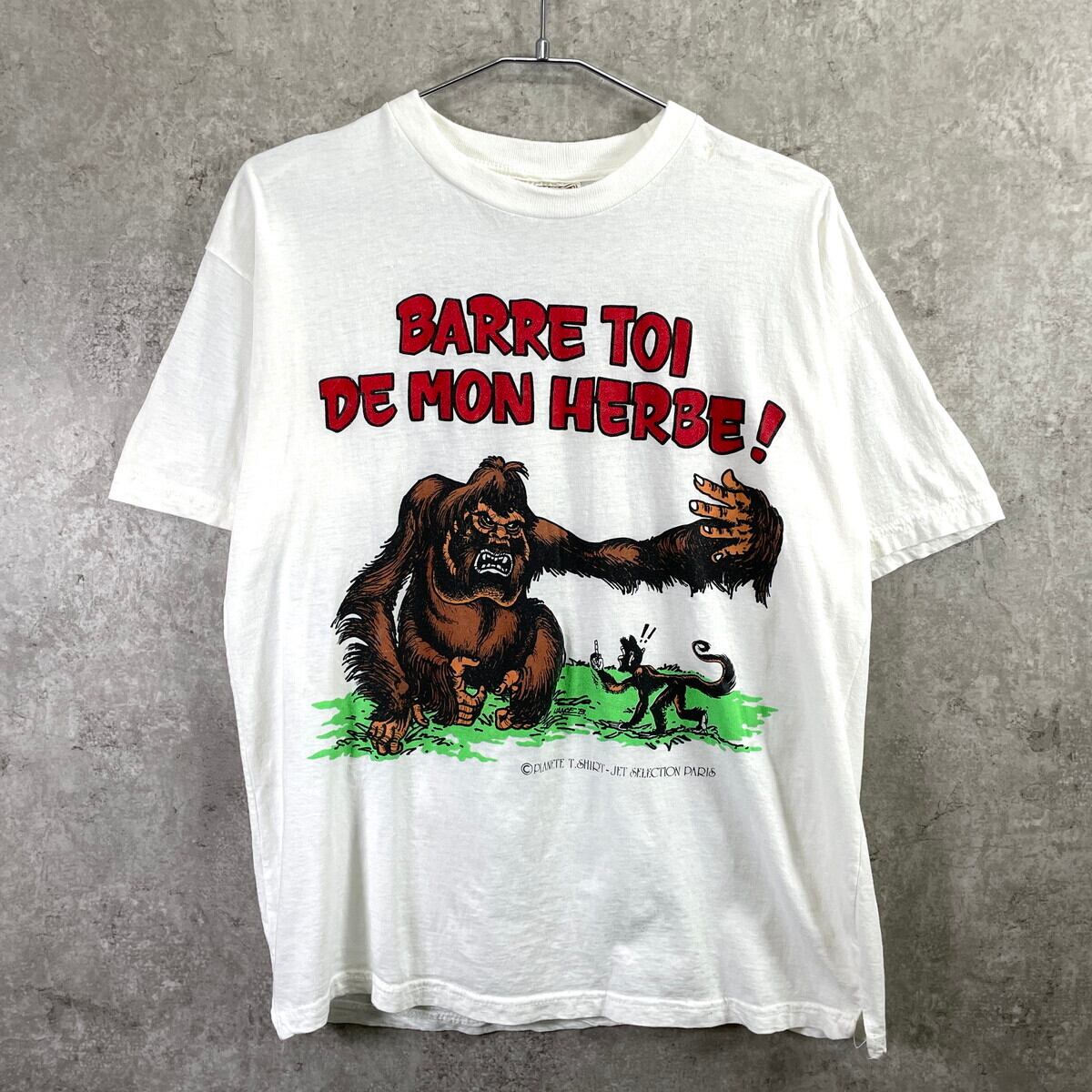 90年代 JET SELECTION PARIS ビッグフット ファニープリントTシャツ メンズL 古着 90s VINTAGE ヴィンテージ ユーロ UMA 白【Tシャツ】/ホワイト