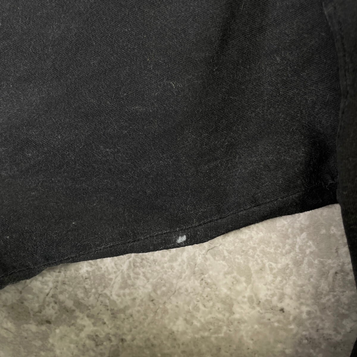 【状態】右袖やバックに汚れ・首元付近にリペア跡・右バックアームホール付近に小穴がございます。