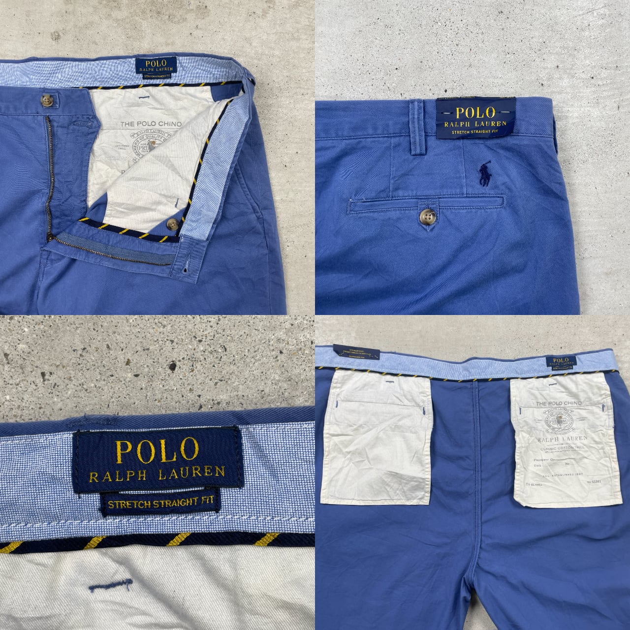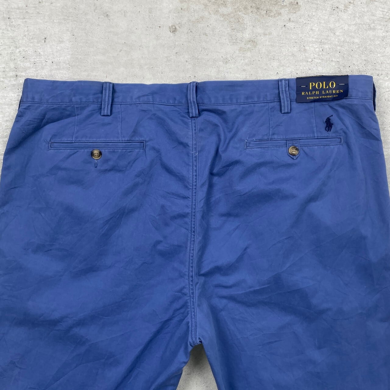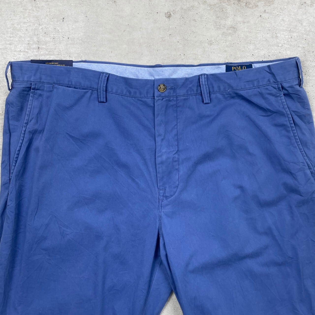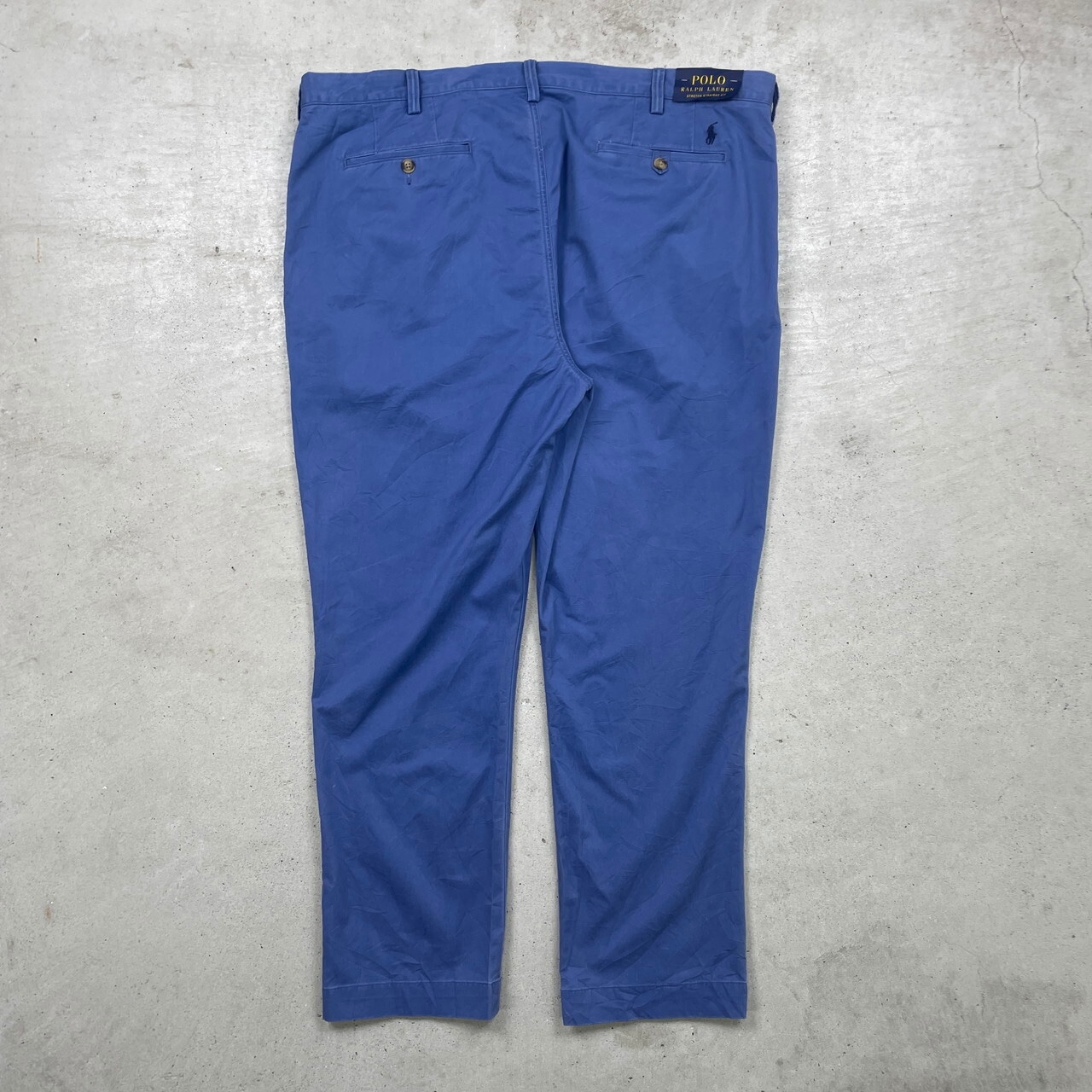 ■Polo Ralph Lauren ポロラルフローレン チノパンツ ポロチノ STRETCH STRAIGHT メンズW42 古着 フラッシャー付き アメカジ 青色【チノパンツ,コットンパンツ】/ブルー