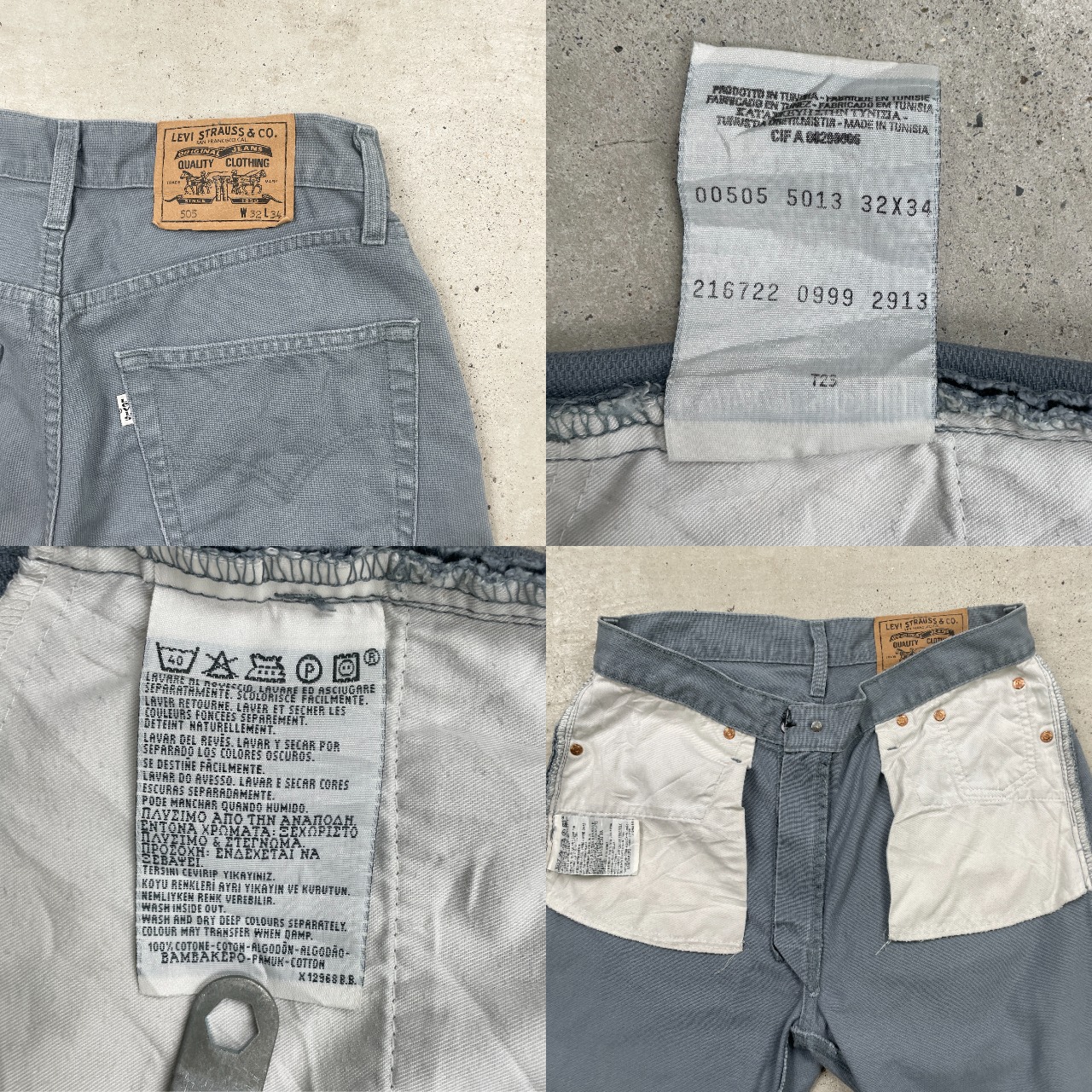 ■90年代 Levi's リーバイス 505 ピケパンツ コットン 白タブ メンズW32 古着 90s アメカジ カラーパンツ ヴィンテージ VINTAGE 【ロングパンツ】/グレー