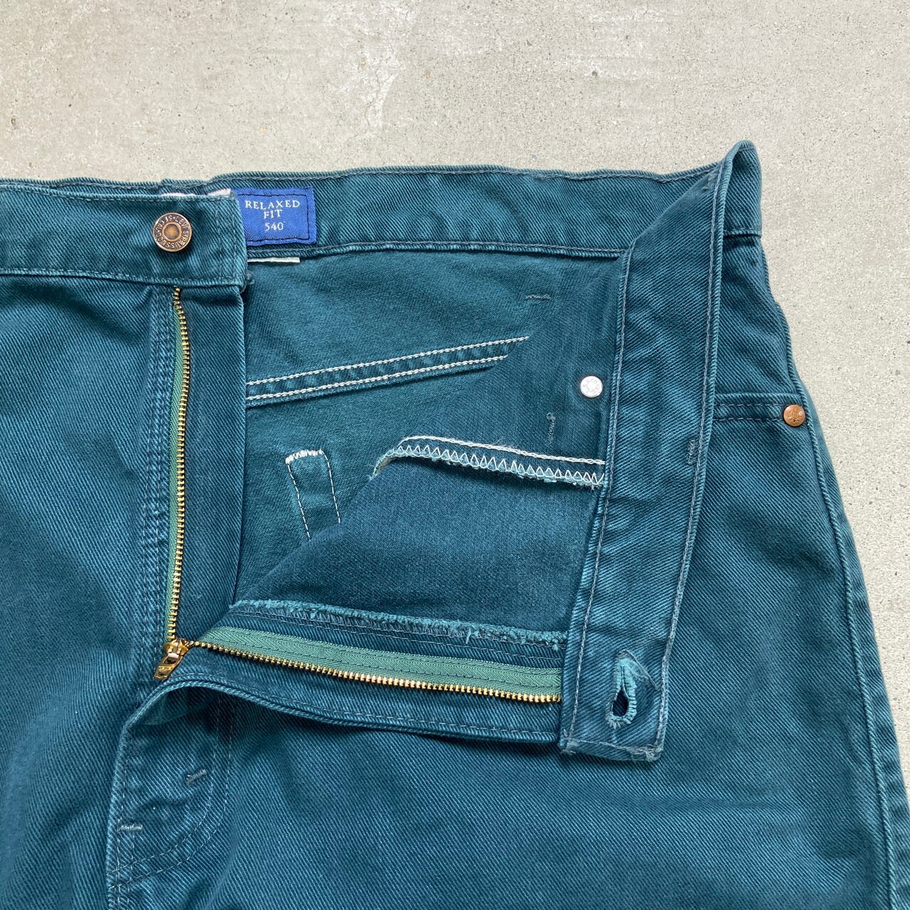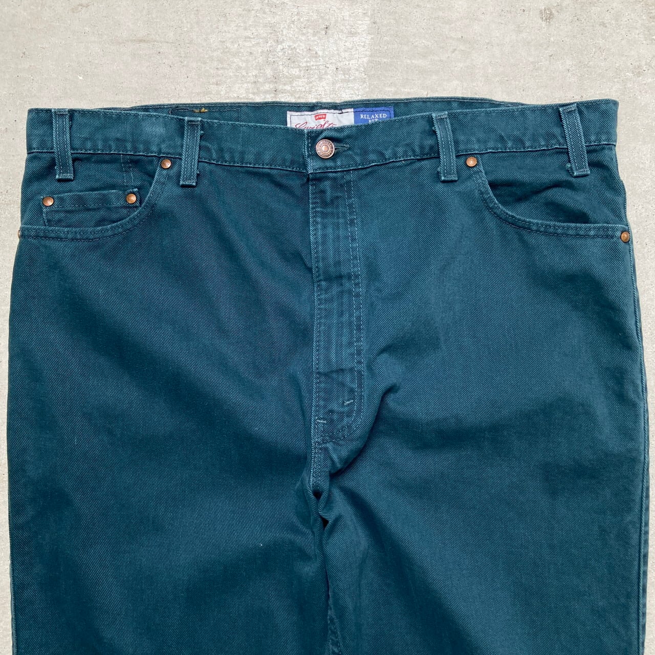 ■90年代 Levi's リーバイス 540 RELAXED FIT カラーデニム テーパードデニムパンツ 茶タブ メンズW41相当 古着 ビッグサイズ 90s ブラウンタブ ヴィンテージ VINTAGE バギーデニムパンツ 緑色【デニムパンツ】/グリーン