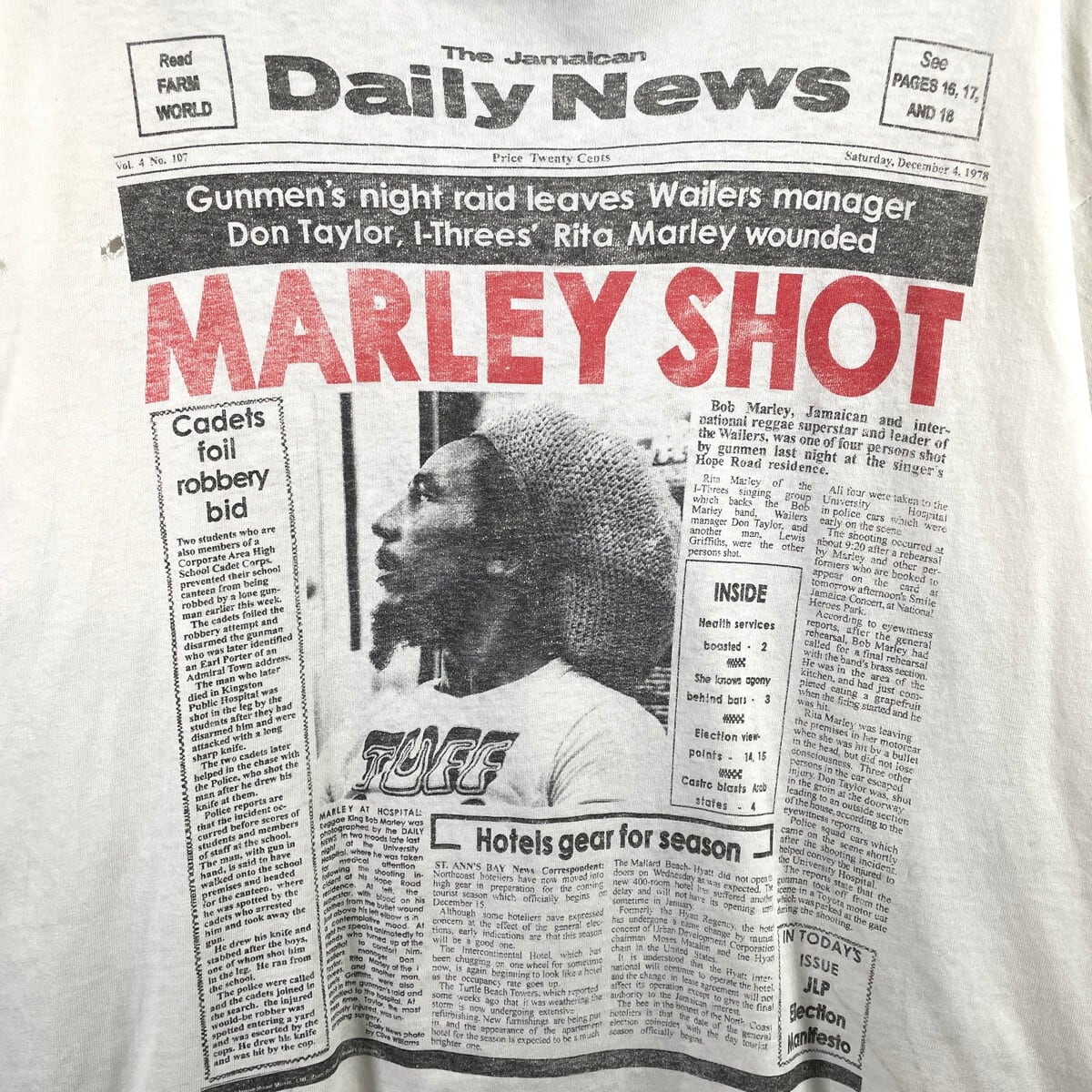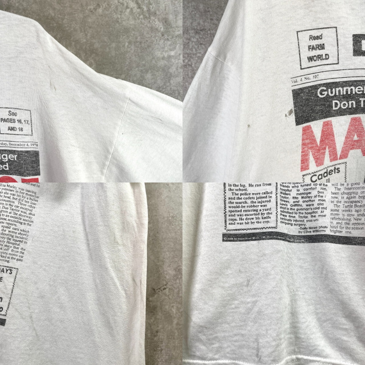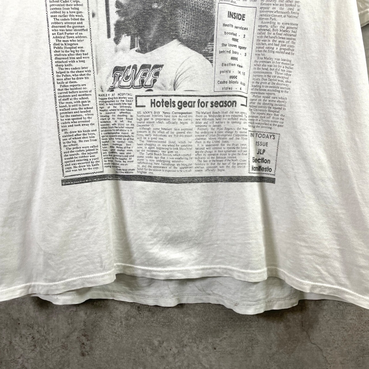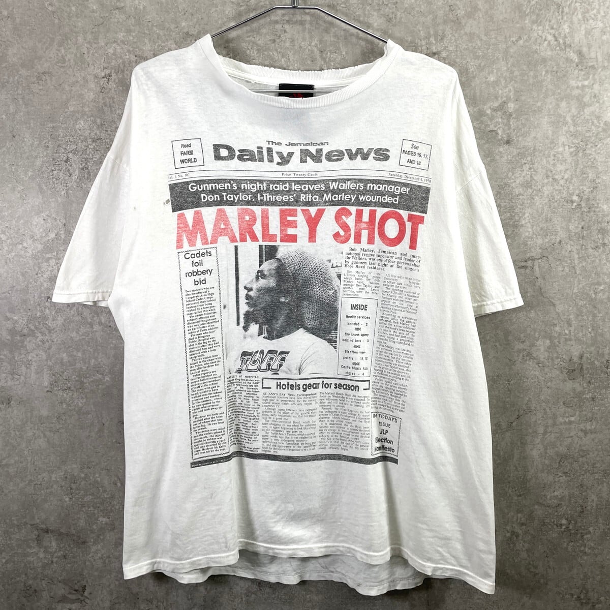 ■00年代 BOB MARLEY ボブマーリー The Jamaican Daily News MARLEY SHOT プリントTシャツ メンズL 古着 00s VINTAGE ヴィンテージ バンT レゲエ 白【Tシャツ】/ホワイト