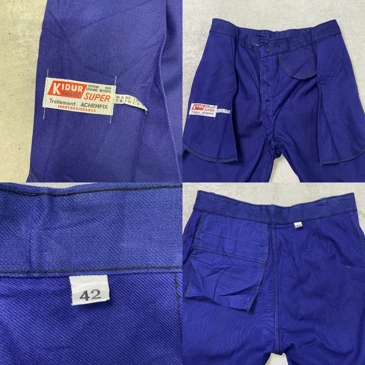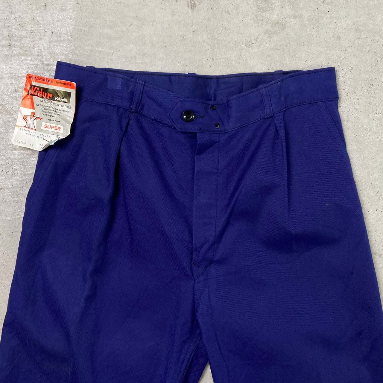 DEAD STOCK NOS 60年代〜70年代 Kidur フランス製 フレンチワークパンツ コットンツイル フロントフック メンズW31相当 古着 60s 70s VINTAGE ヴィンテージ ユーロワーク インクブルー ネイビー 紺色【ロングパンツ】/ネイビー