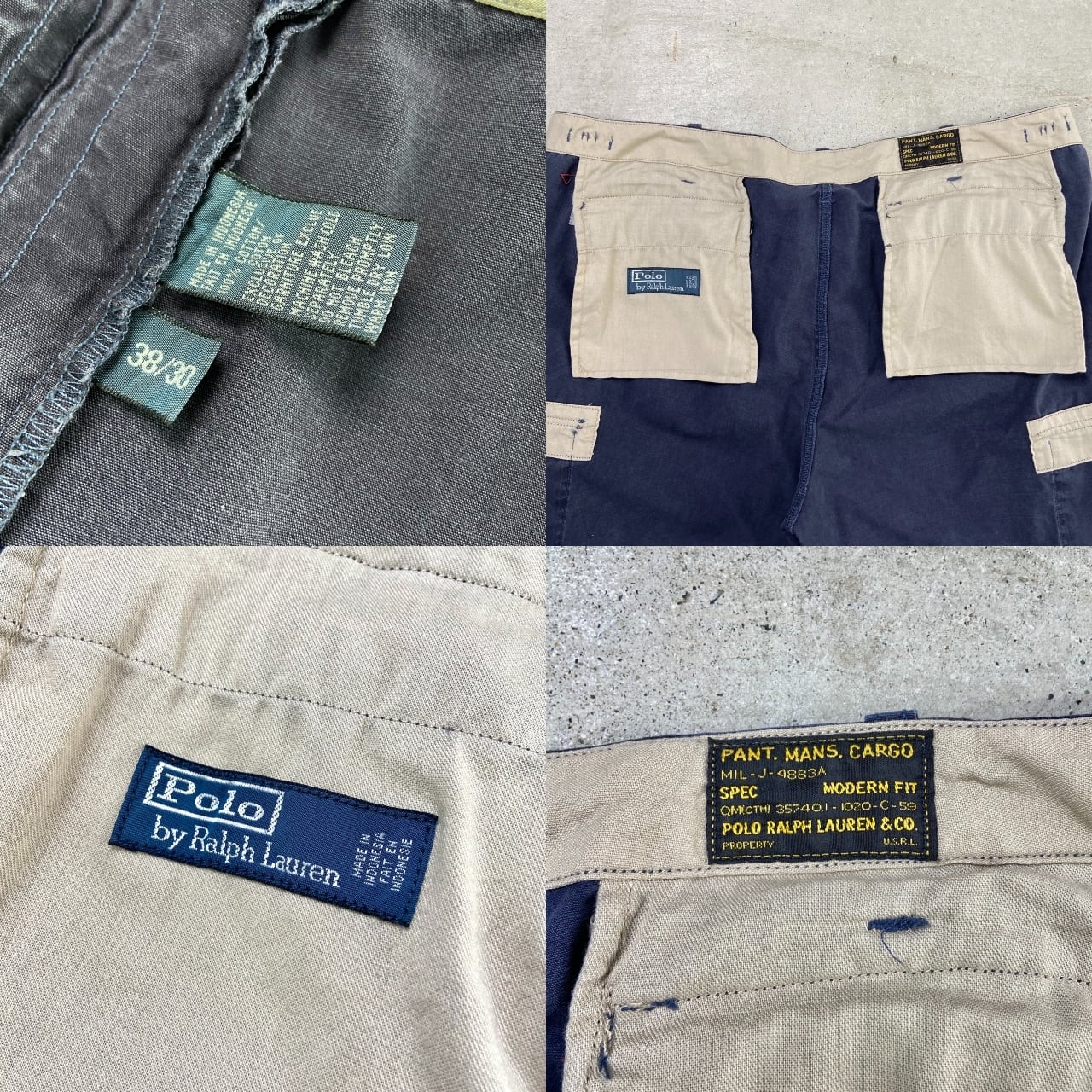 ■90年代 Polo by Ralph Lauren ポロバイラルフローレン MODERN FIT ミリタリーカーゴパンツ メンズW38 古着 90s ヴィンテージ VINTAGE フェードネイビー 紺色【チノパンツ,コットンパンツ】/ネイビー