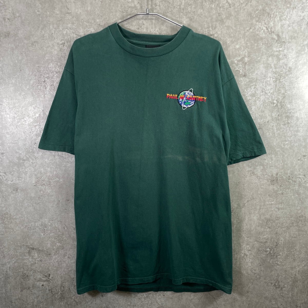 90年代 USA製 PAUL MACCARTNEY ポールマッカートニー ワールドツアー バンドTシャツ メンズL 古着 90s VINTAGE ヴィンテージ シングルステッチ バンT THE BEATLES ビートルズ 緑【Tシャツ】/グリーン
