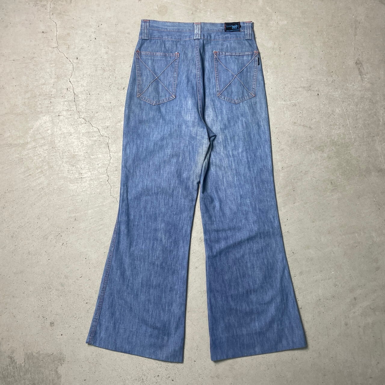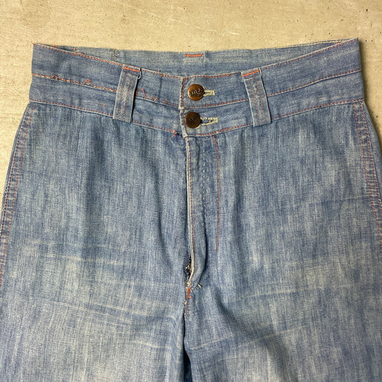 70年代頃 LOLA20 ユーロ フレアデニムパンツ レディースW27相当 古着 ジーンズ ブーツカット ハイウエスト オレンジステッチ 【デニムパンツ】/ブルー