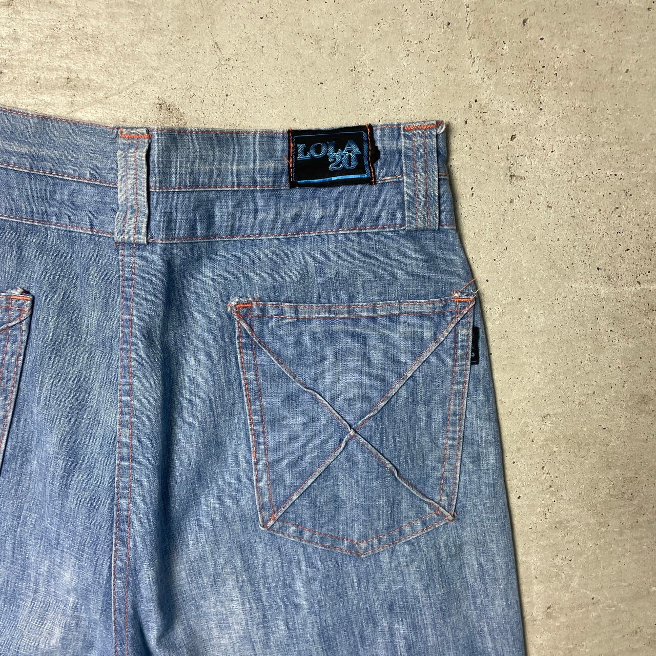 ■LOLA20 ユーロ フレアデニムパンツ レディースW27相当 古着 ジーンズ ブーツカット ハイウエスト オレンジステッチ 【デニムパンツ】/ブルー