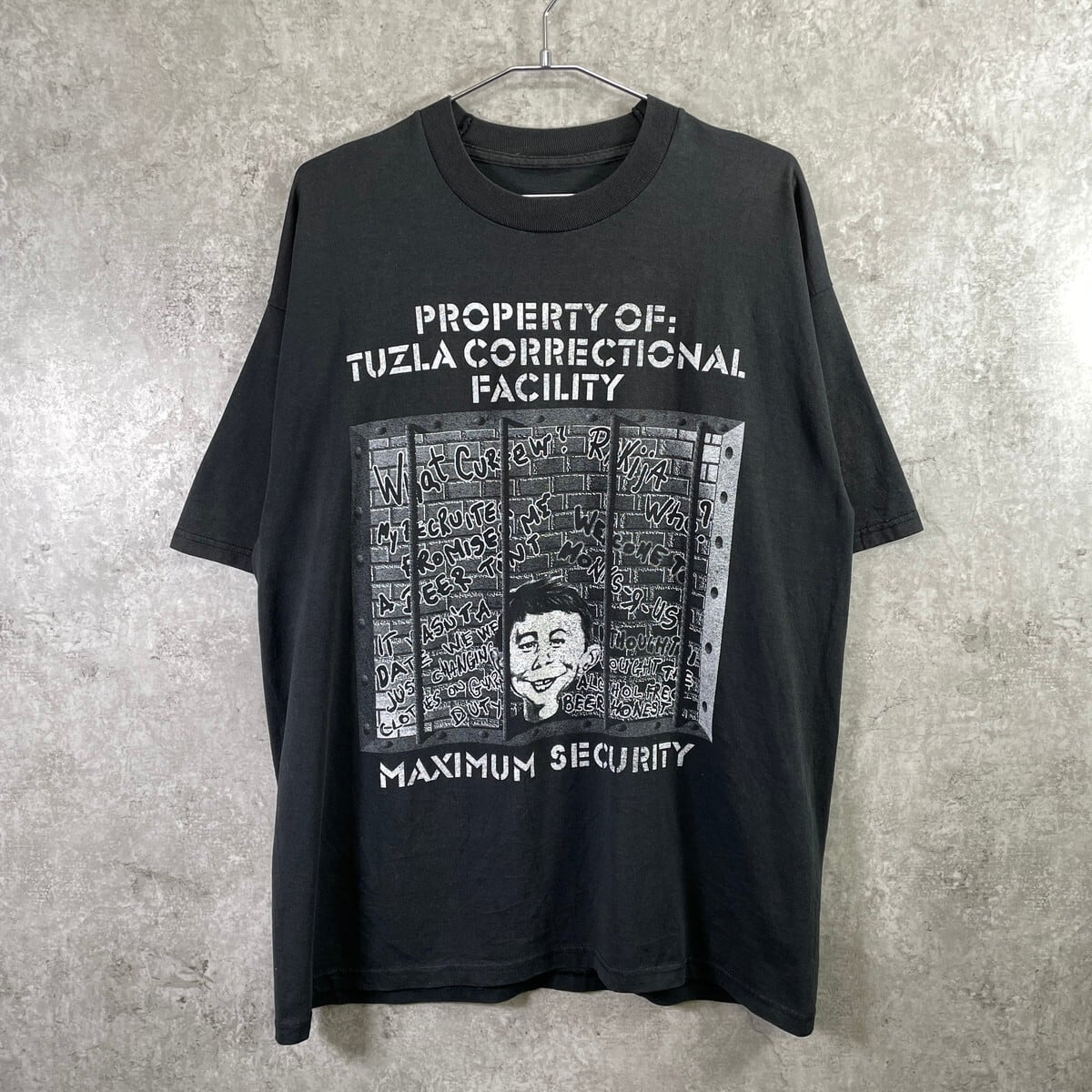 90年代 TUZLA CORRECTIONAL FACILITY アルフレッド プリントTシャツ メンズXL相当 古着 90s ヴィンテージ VINTAGE プリズン 囚人 黒【Tシャツ】/ブラック