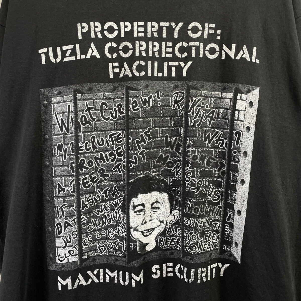 ■90年代 TUZLA CORRECTIONAL FACILITY アルフレッド プリントTシャツ メンズXL相当 古着 90s ヴィンテージ VINTAGE トゥズラ刑務所 プリズン 囚人 黒【Tシャツ】/ブラック
