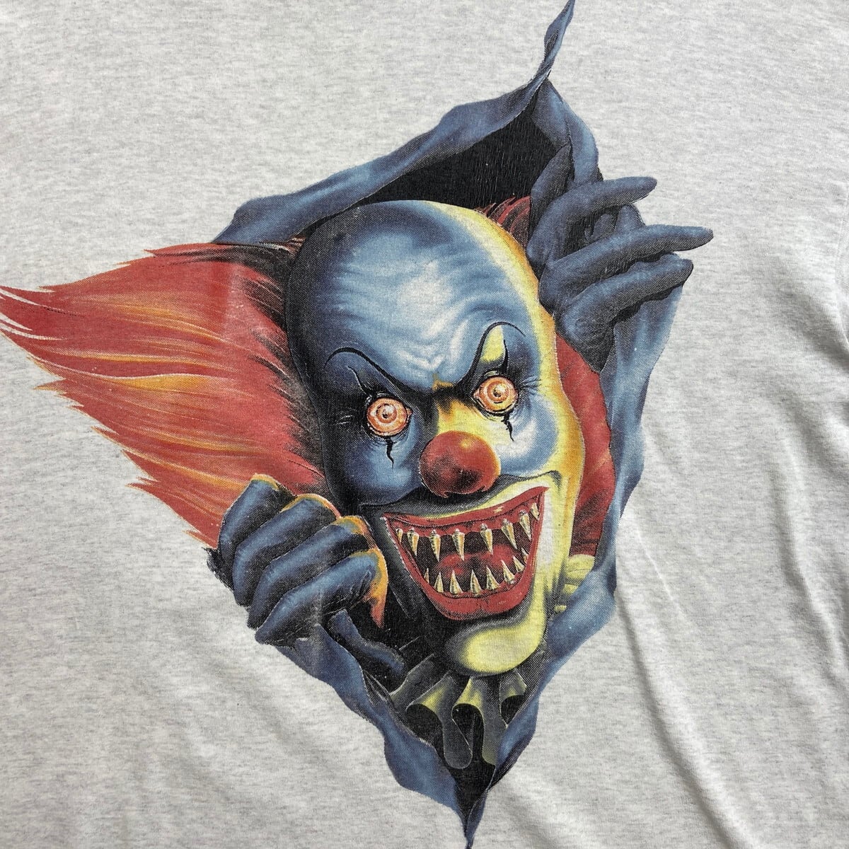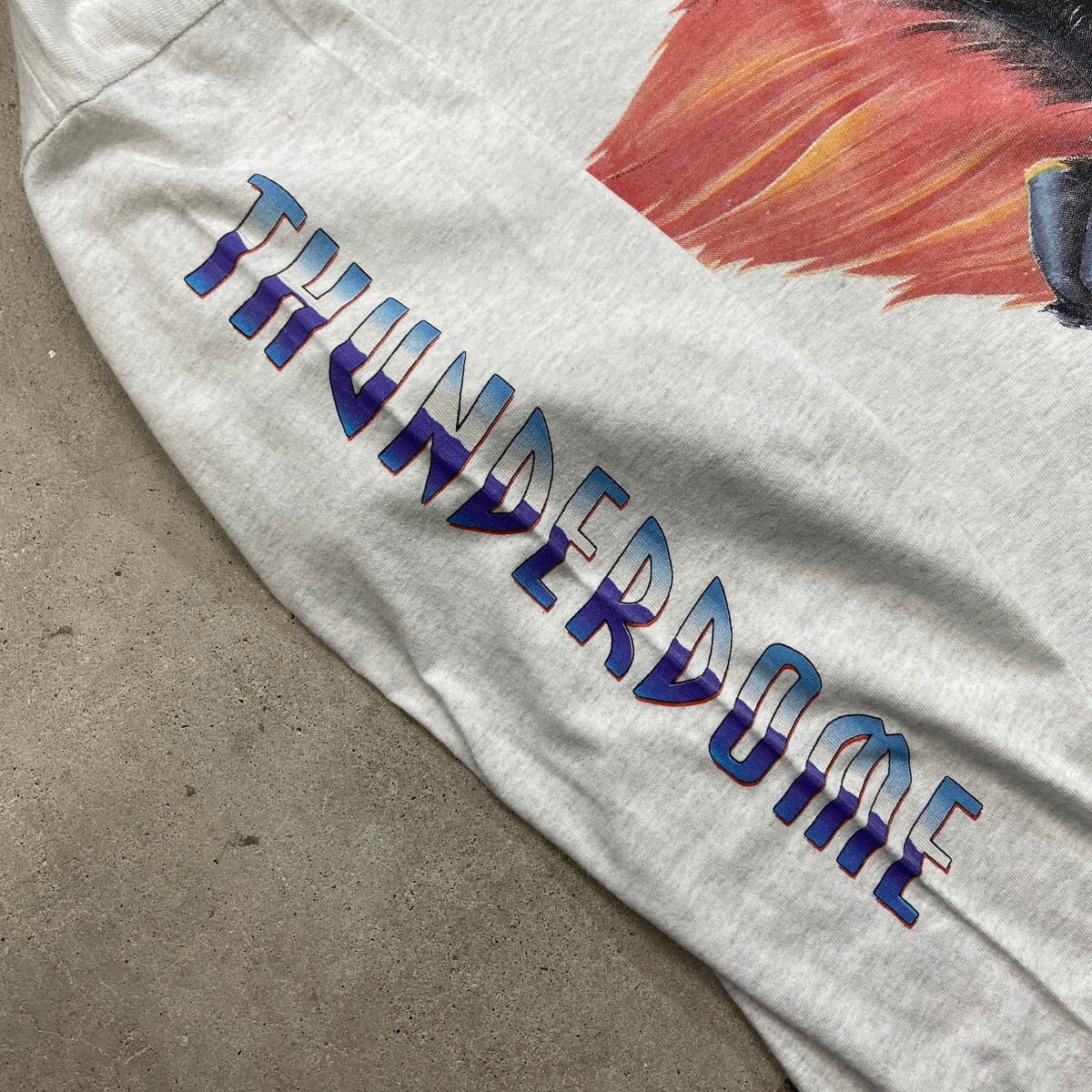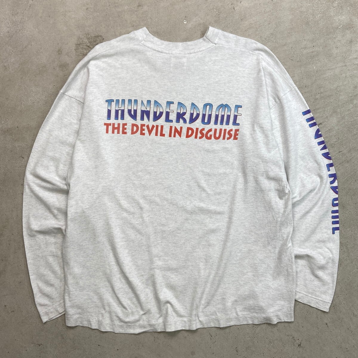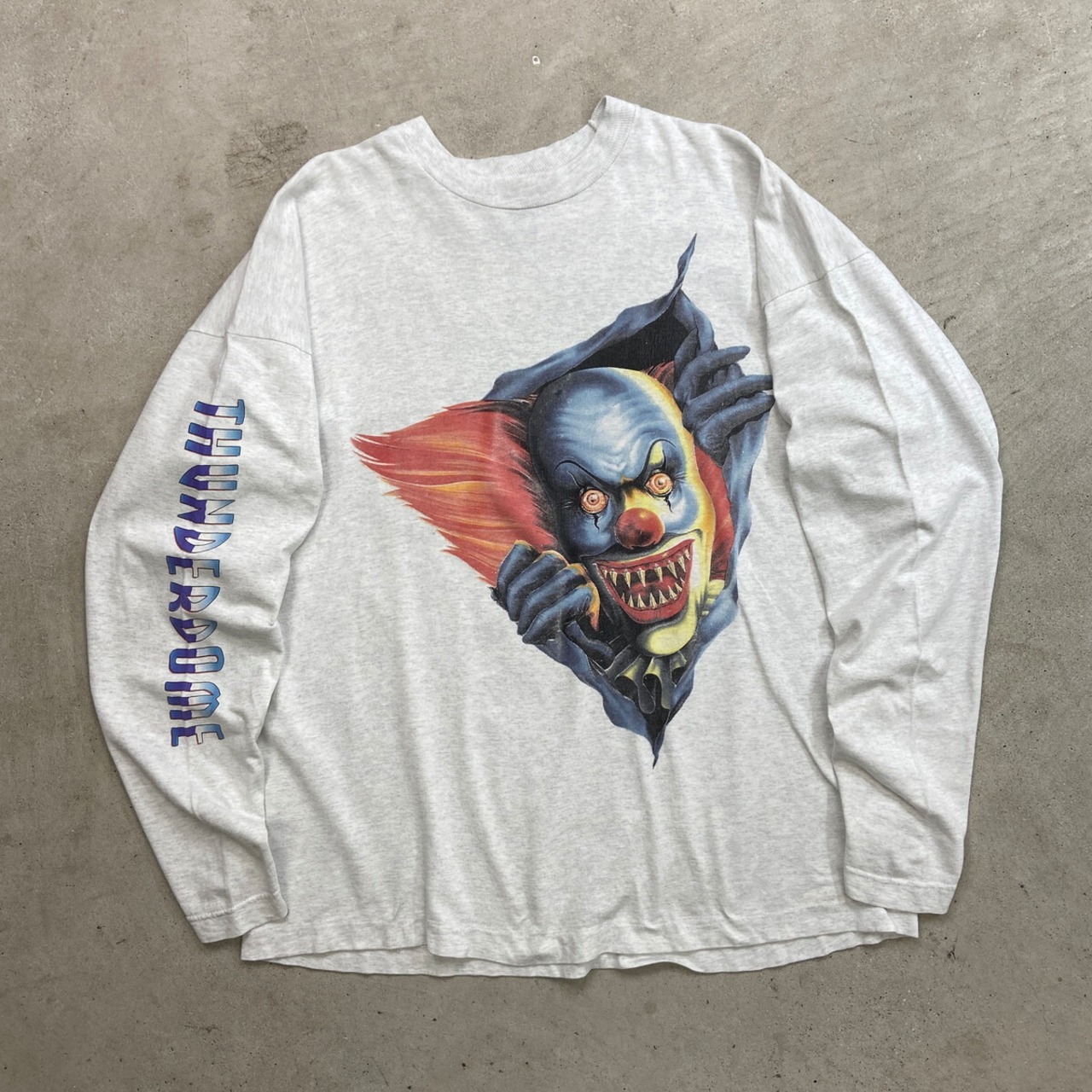 90年代 アイルランド製 THUNDERDOME DEVIL IN DISGUISE バンド ロングTシャツ メンズXL 古着 90s ヴィンテージ VINTAGE シングルステッチ バンT ロンT 袖プリ ピエロ ライトグレー【ロングTシャツ】/グレー