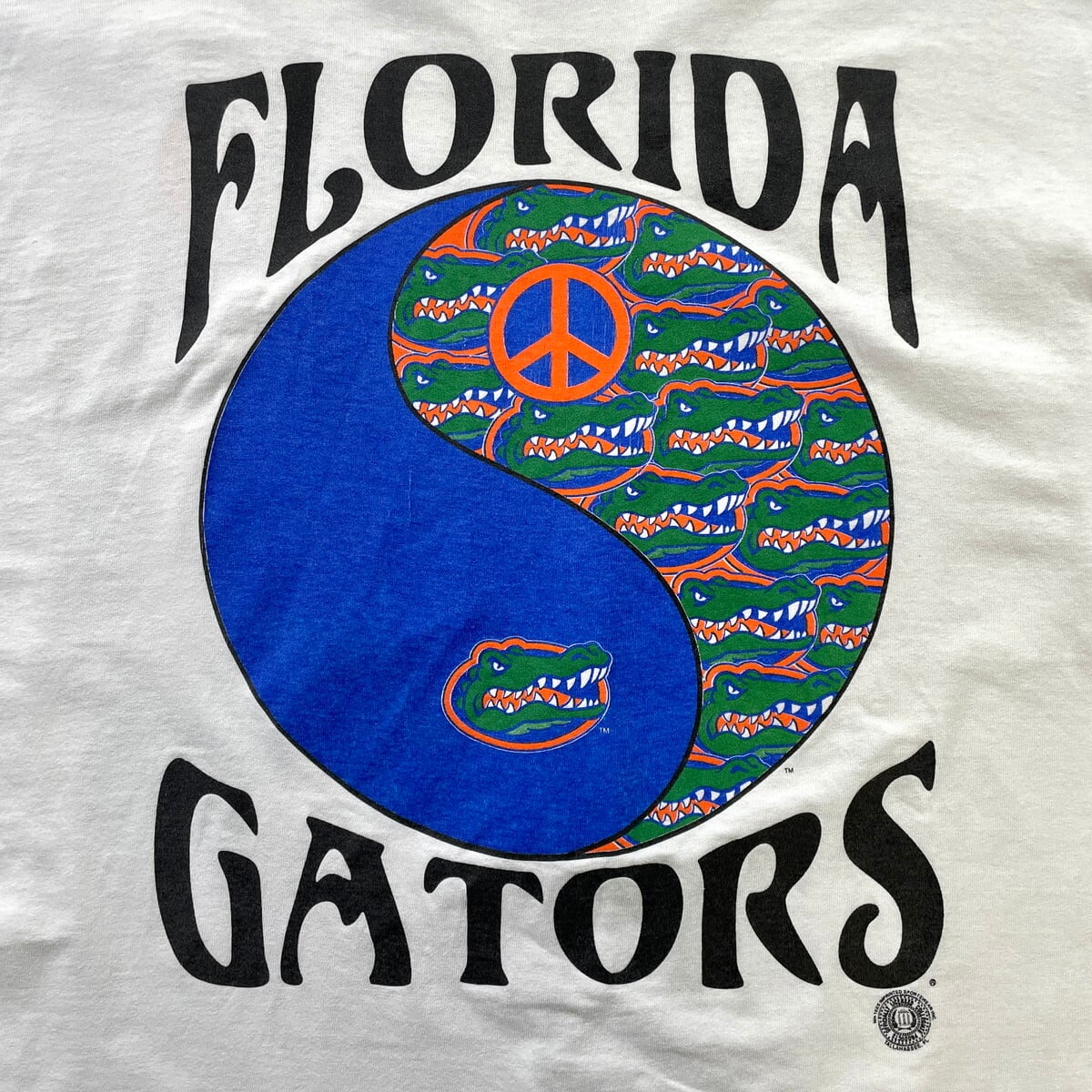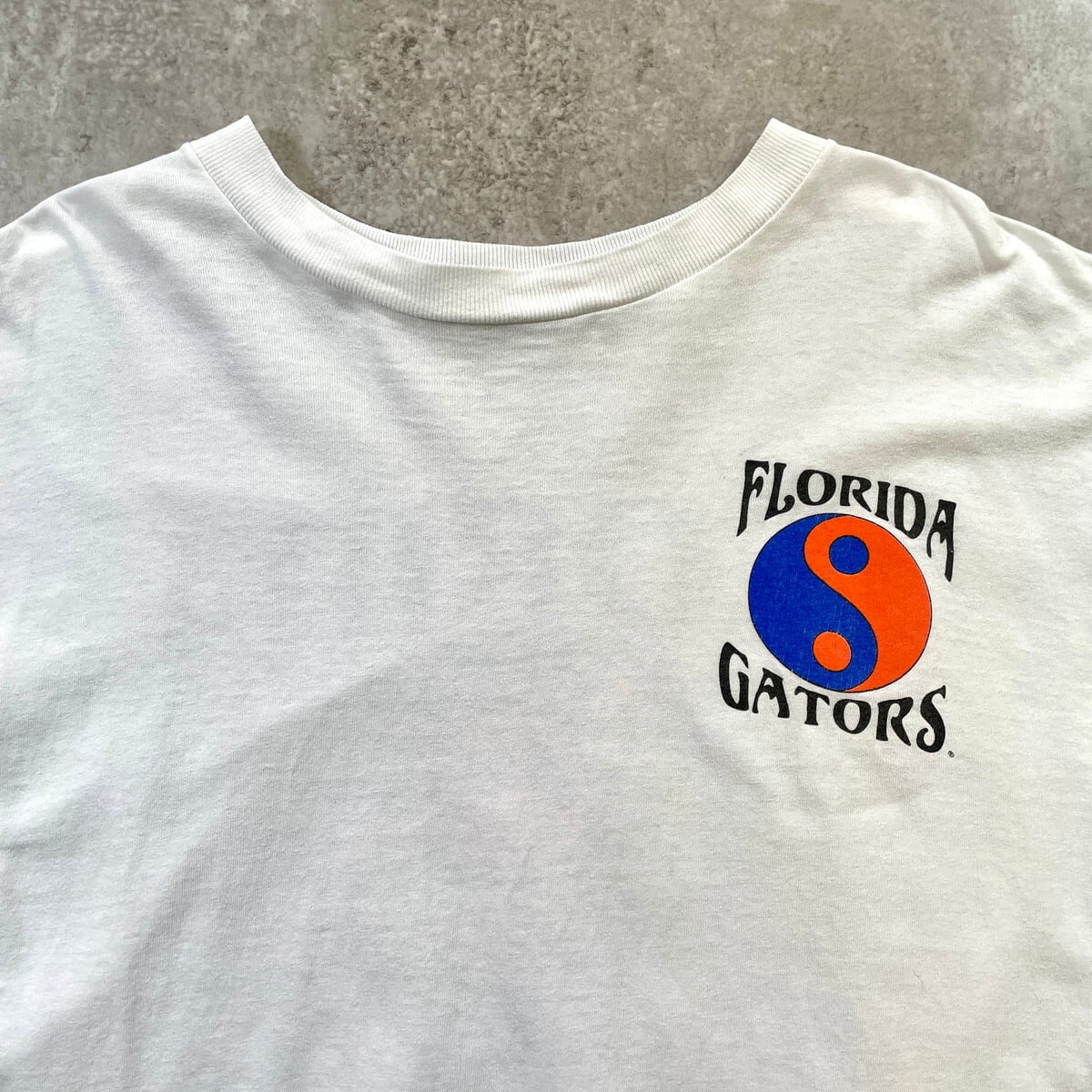 90年代 FLORIDA GATORS フロリダ・ゲーターズ YING YANG 陰陽 プリントTシャツ メンズXL相当 古着 90s カレッジチーム シングルステッチ ヴィンテージ VINTAGE 白色【Tシャツ】/ホワイト