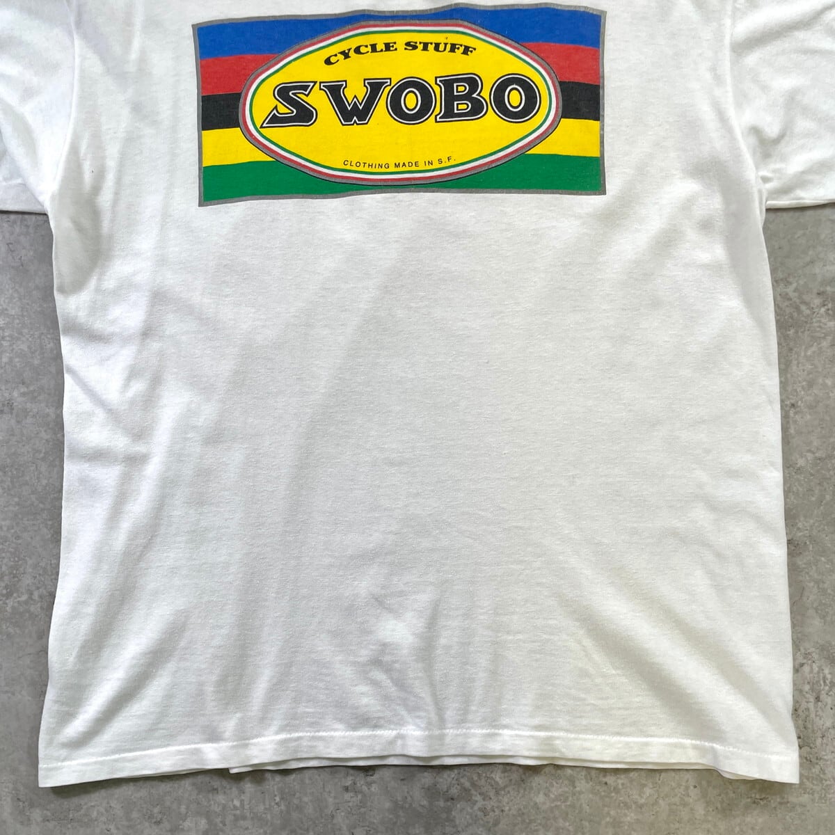 90年代 USA製 CYCLE STUFF SWOBO アドバタイジングプリントTシャツ サイクル 自転車 メンズM~L相当 古着 90s シングルステッチ 企業ロゴ ヴィンテージ VINTAGE 白色【Tシャツ】/ホワイト