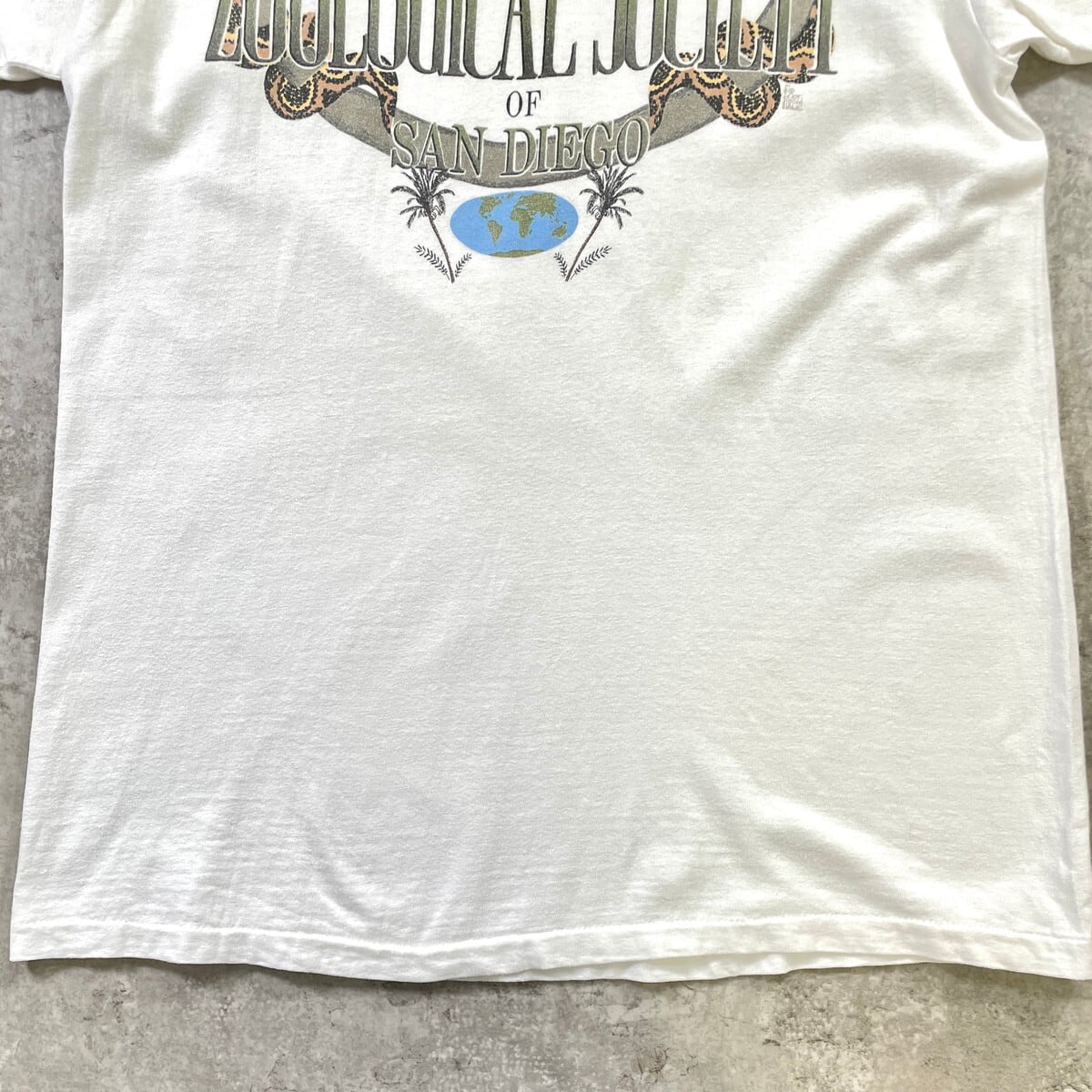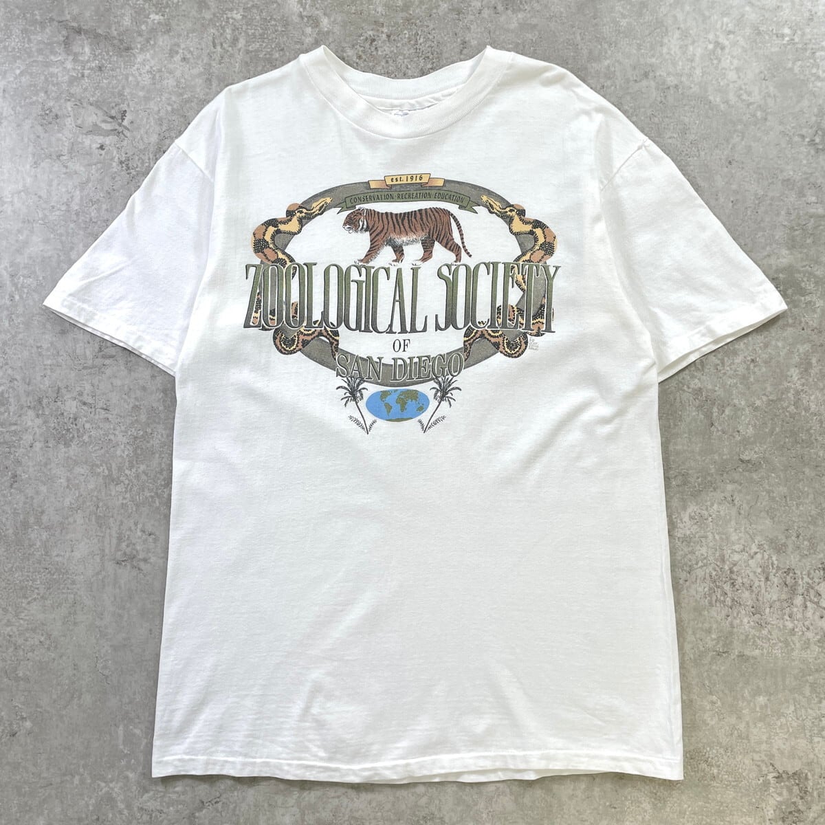 ■80~90年代 USA製 ZOOLOGICAL SOCIETY OF SAN DIEGO アニマル プリントTシャツ メンズS~M相当 レディースM相当 古着 80s 90s VINTAGE ヴィンテージ シングルステッチ 虎 トラ 白【Tシャツ】/ホワイト
