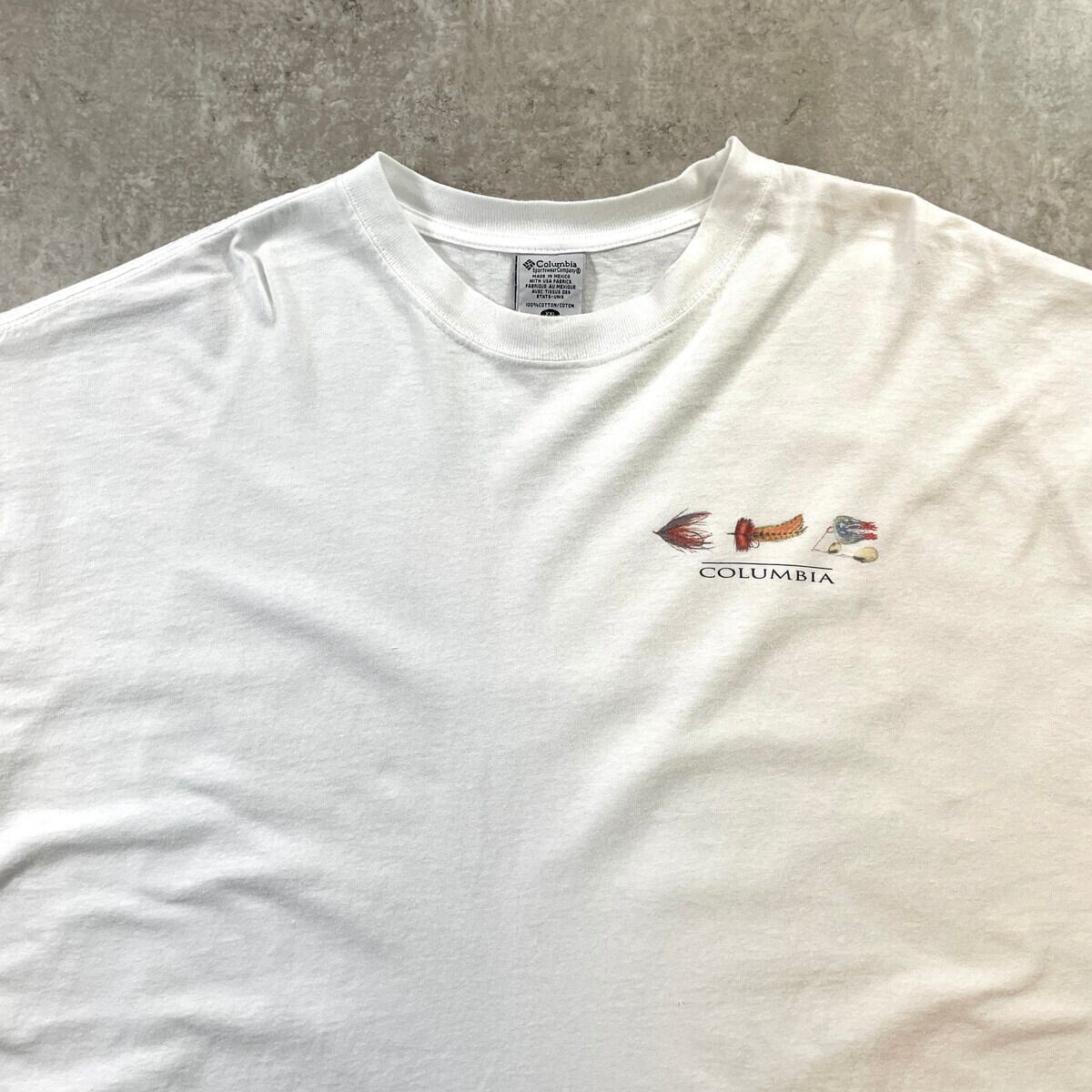 ■90年代 Columbia コロンビア フライフィッシング 毛針 プリントTシャツ メンズ2XL 古着 90s ヴィンテージ VINTAGE FLY FISHING ルアー ビッグサイズ 大きいサイズ 白【Tシャツ】/ホワイト