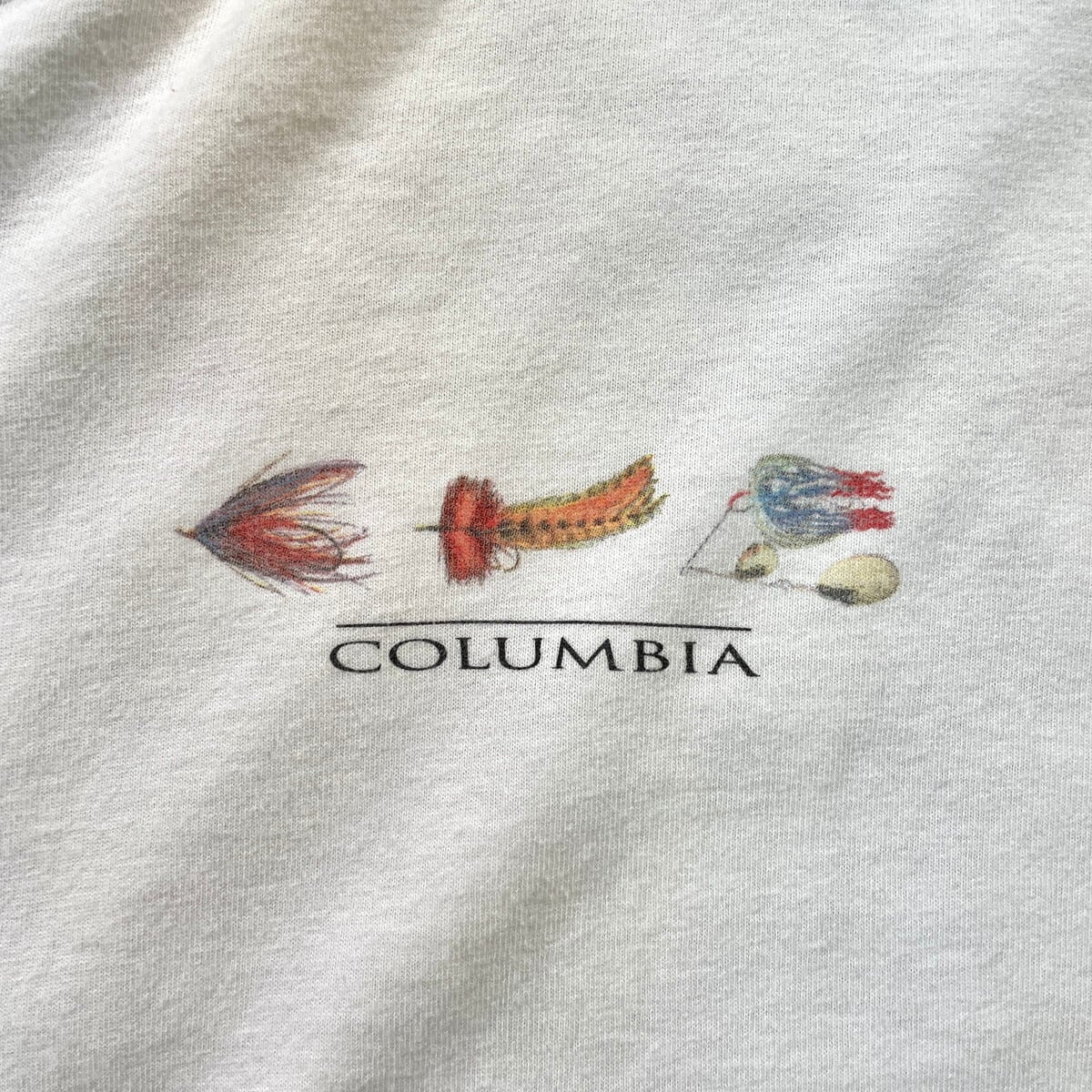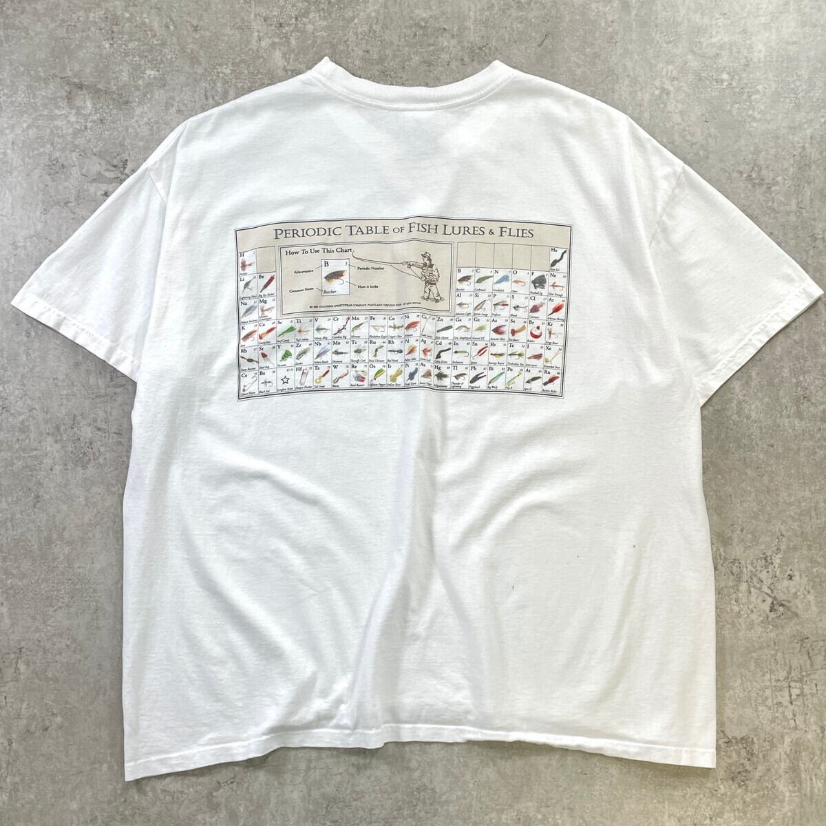 90年代 Columbia コロンビア フライフィッシング 毛針 プリントTシャツ メンズ2XL 古着 90s ヴィンテージ VINTAGE FLY FISHING ルアー ビッグサイズ 大きいサイズ 白【Tシャツ】/ホワイト