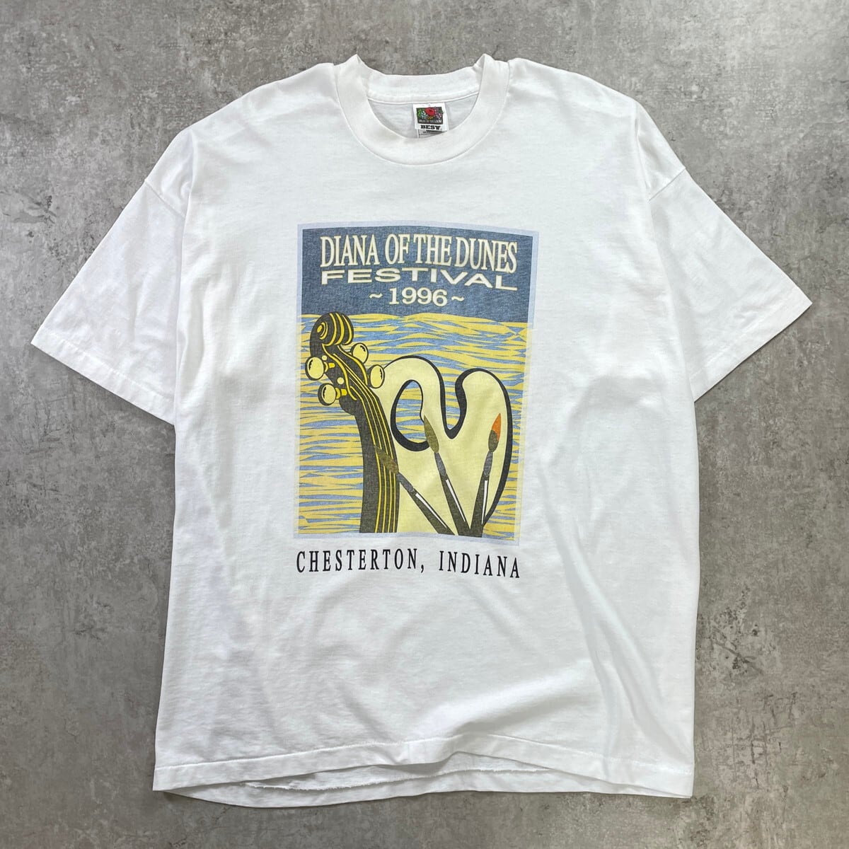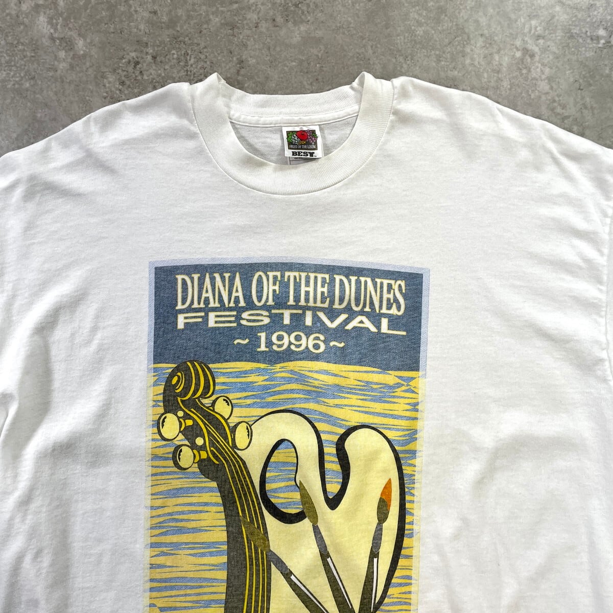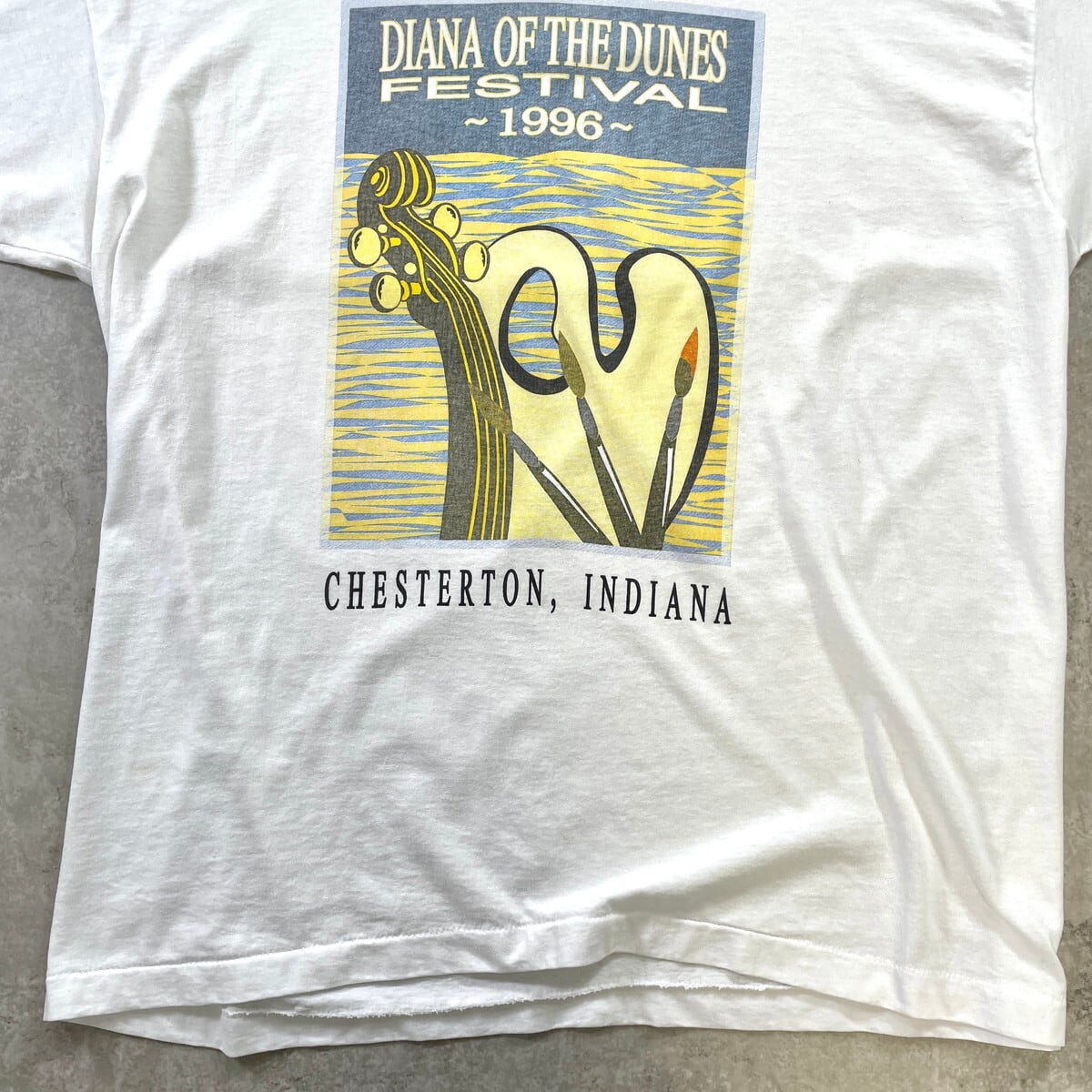 90年代 USA製 DIANA OF THE DUNES FESTIVAl 1996 アートプリントTシャツ メンズ2XL 古着 90s VINTAGE ヴィンテージ シングルステッチ ビッグサイズ 大きいサイズ 白【Tシャツ】/ホワイト
