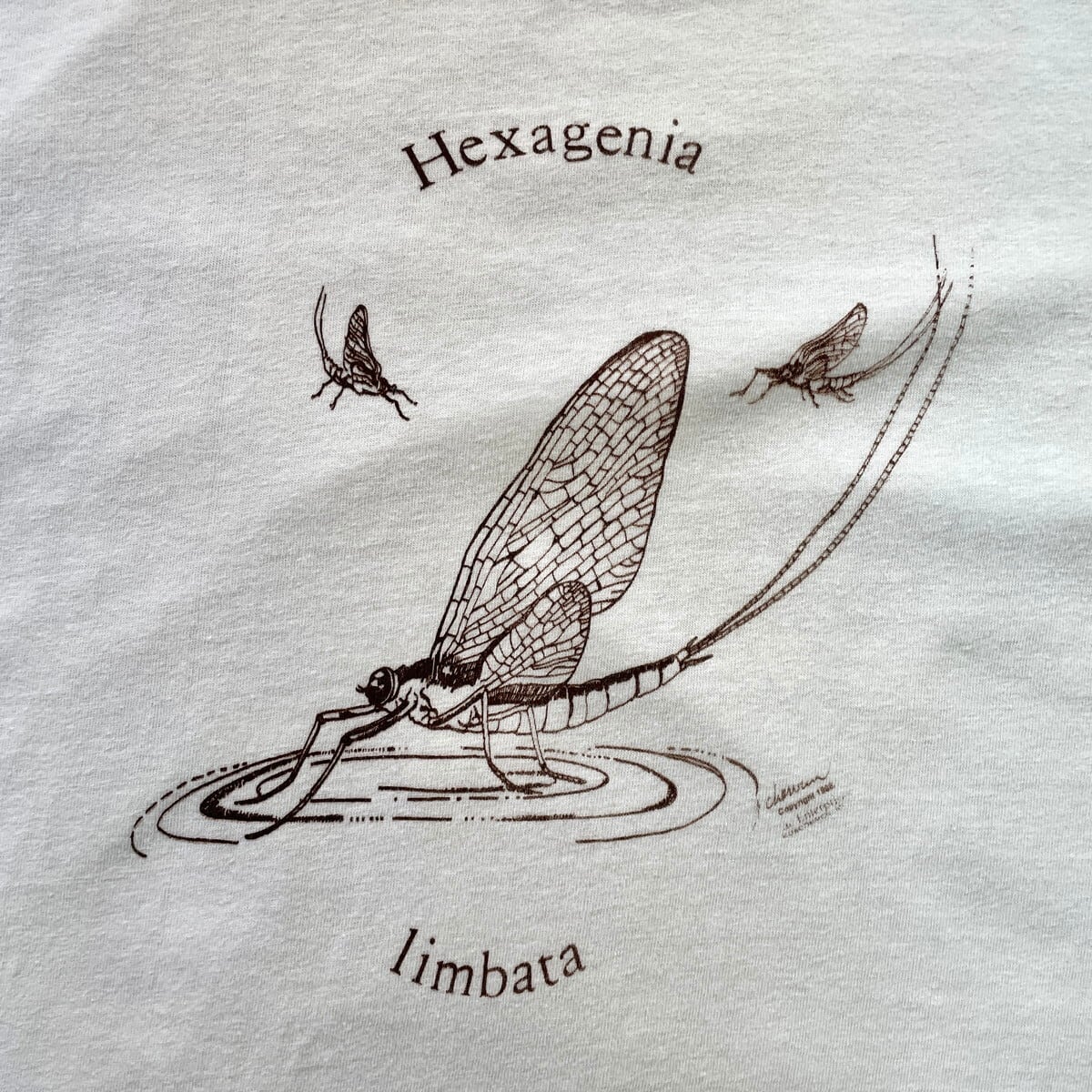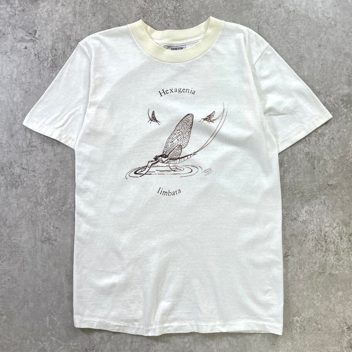 80年代 USA製 Hexagenia limbata カゲロウ 昆虫プリントTシャツ メンズM 古着 1988 80s VINTAGE ヴィンテージ シングルステッチ アニマル ヘキサゲニアリンバタ モスキート 蚊 白【Tシャツ】/ホワイト