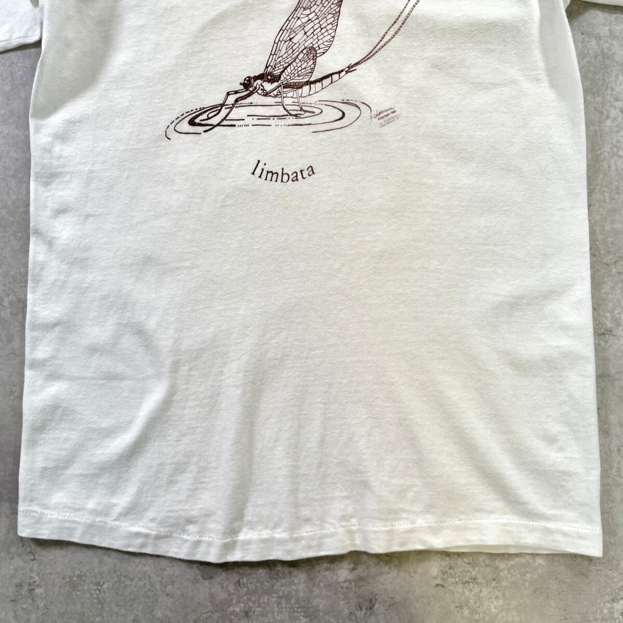 ■80年代 USA製 Hexagenia limbata カゲロウ 昆虫プリントTシャツ メンズM 古着 1988 80s VINTAGE ヴィンテージ シングルステッチ アニマル ヘキサゲニアリンバタ モスキート 蚊 白【Tシャツ】/ホワイト