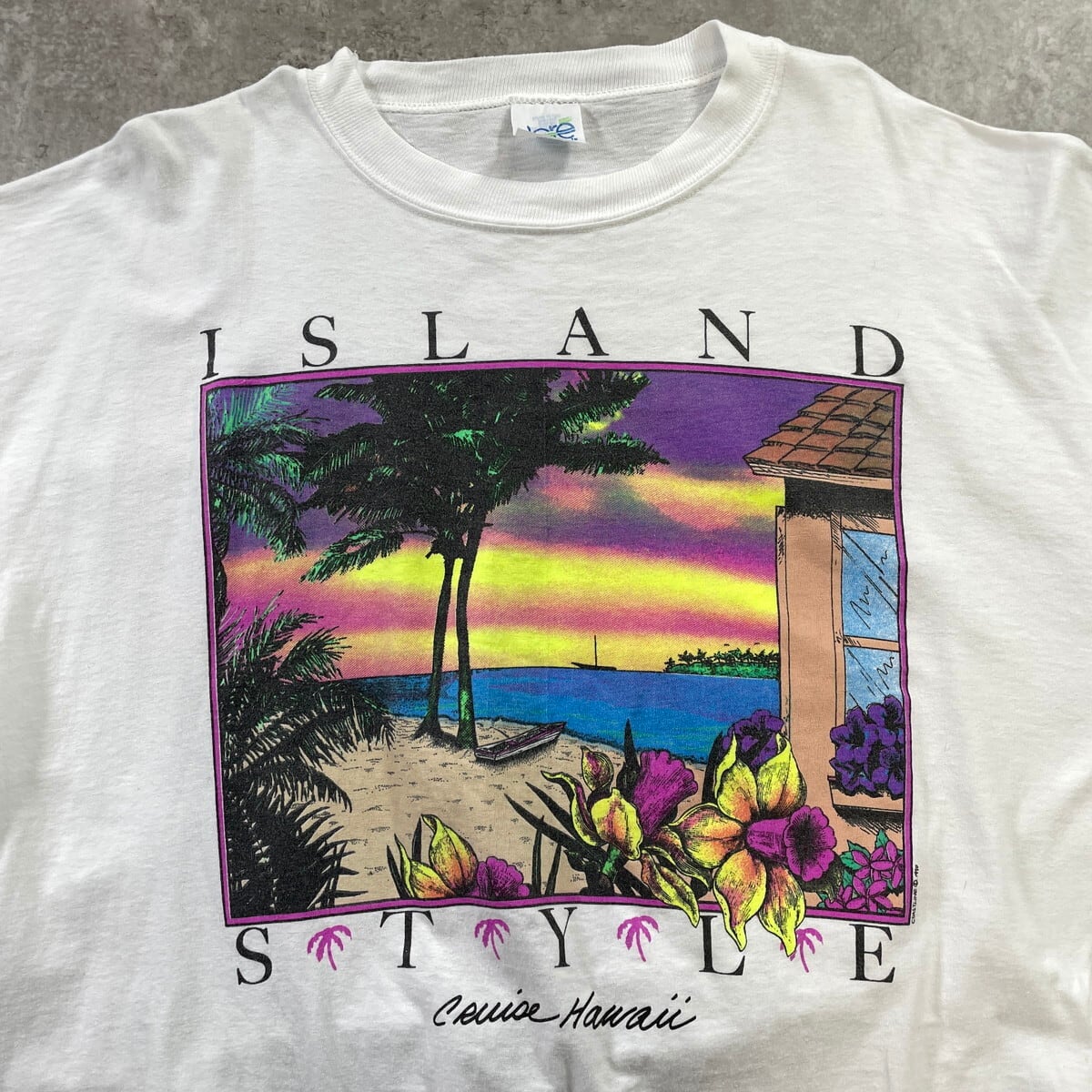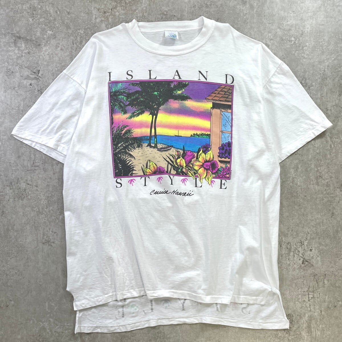 90年代 USA製 ISLAND STYLE アートプリントTシャツ メンズ2XL相当 古着 1990 90s VINTAGE ヴィンテージ シングルステッチ スーベニア ビッグサイズ 大きいサイズ 白【Tシャツ】/ホワイト