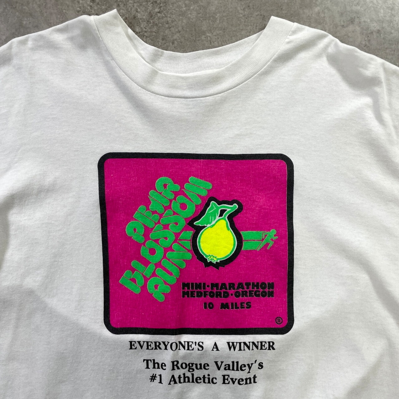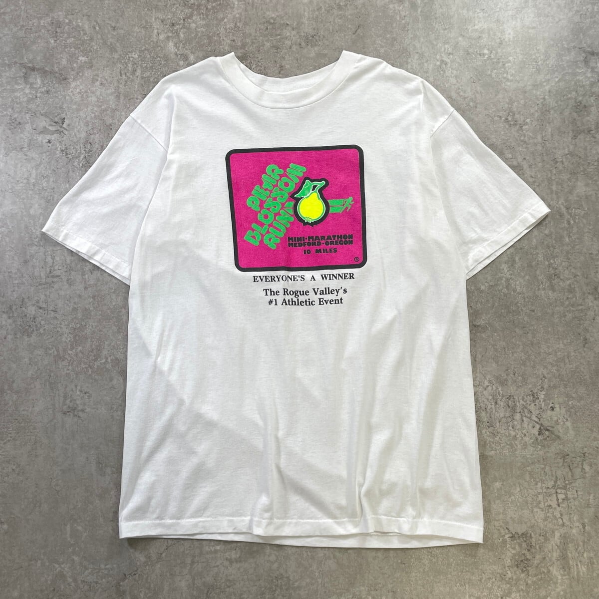 80年代 PEAR BLOSSOM RUN アートプリントTシャツ メンズXL相当 古着 80s VINTAGE ヴィンテージ シングルステッチ イベント 白【Tシャツ】/ホワイト