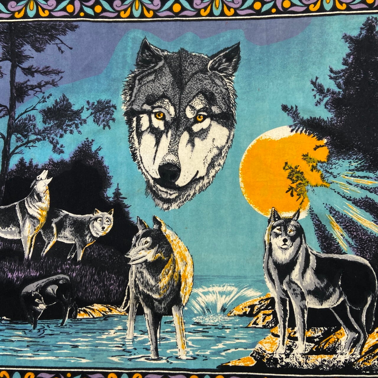ヴィンテージ Wolf Art Blanket 狼 アニマルプリント ブランケット /マルチカラー