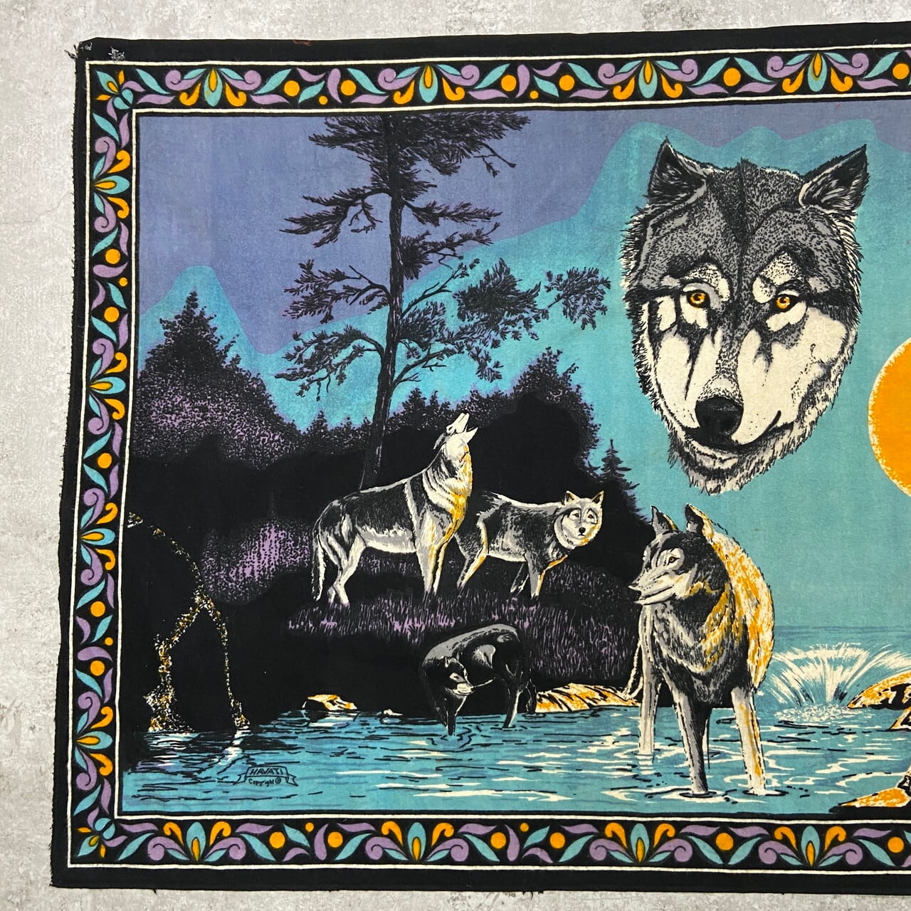 ■ヴィンテージ HAVATI Wolf Art Blanket 狼 アニマルプリント ブランケット /マルチカラー