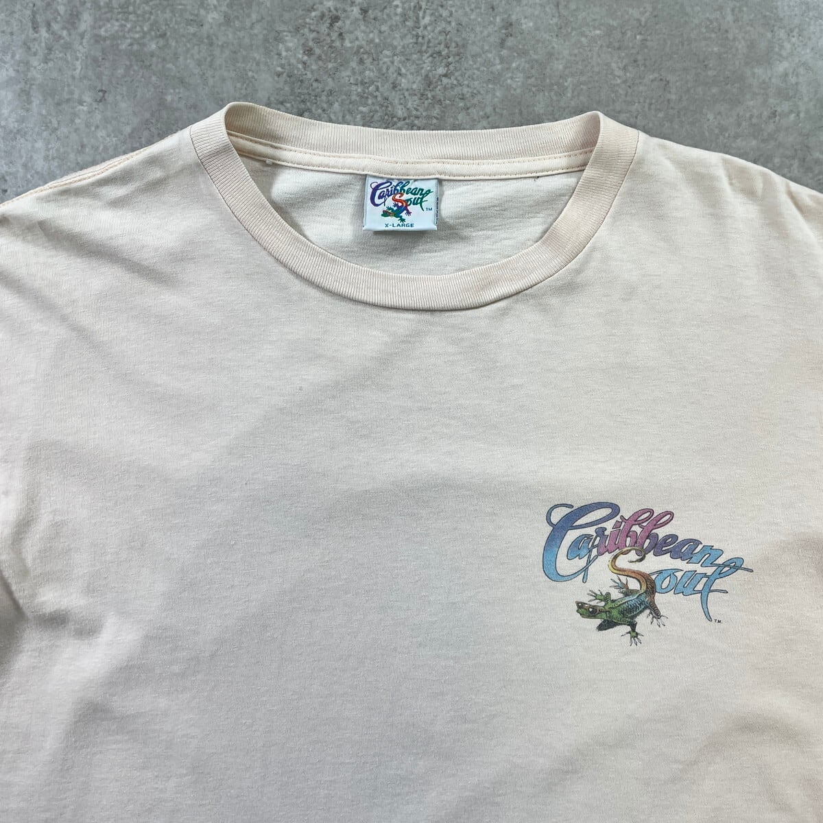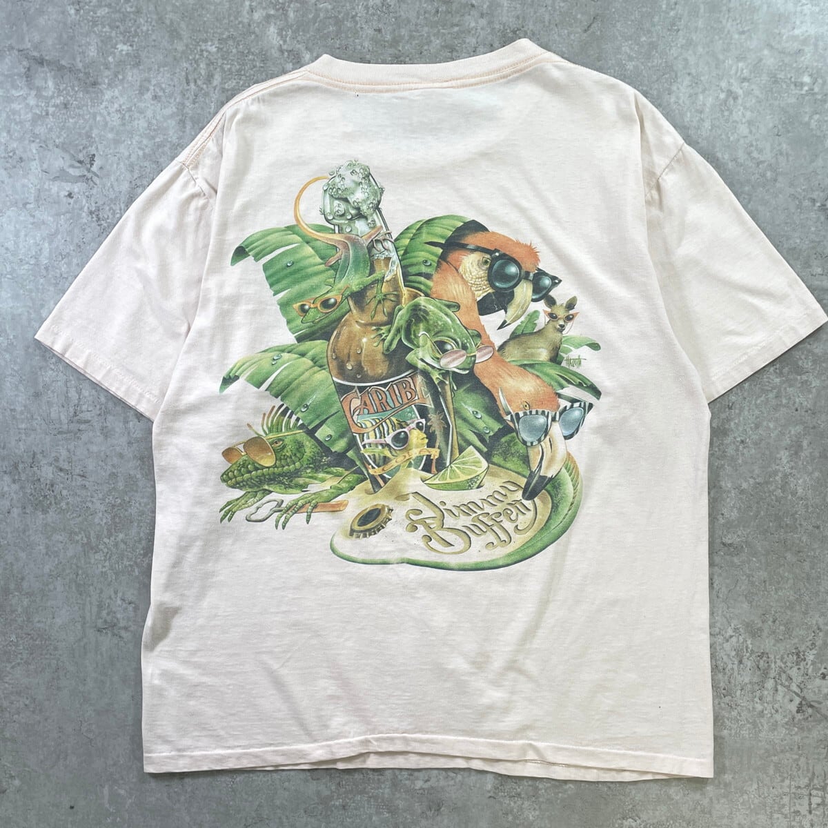 90年代 USA製 Caribbean Soul JIMMY BUFFETT ジミーバフェット トカゲ アニマルプリントTシャツ メンズXL 古着 90s VINTAGE ヴィンテージ シングルステッチ カエル 爬虫類 ビール ライトピンク【Tシャツ】/ピンク