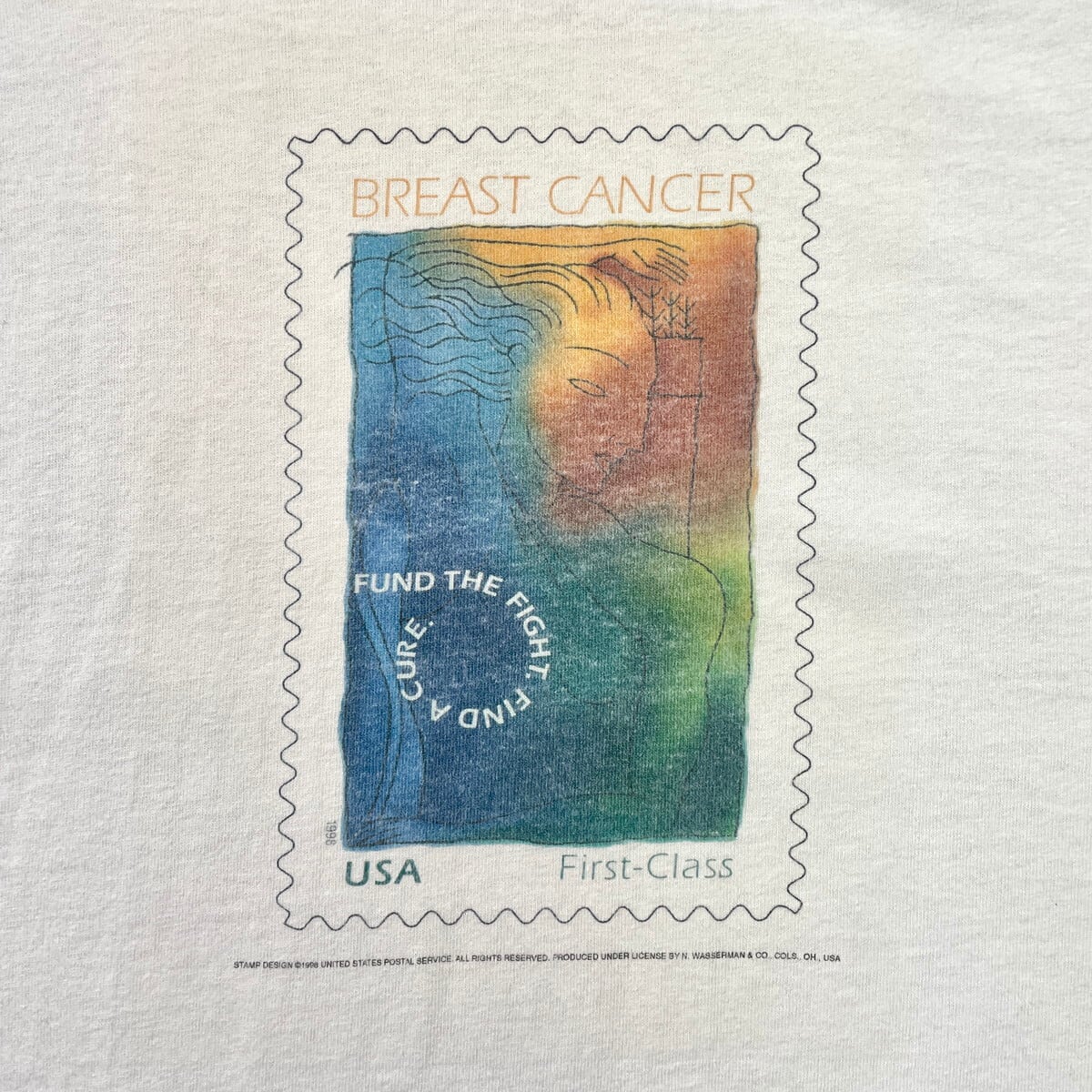 ■90年代 BREAST CANCER 切手 アートプリントTシャツ メンズXL 古着 90s VINTAGE ヴィンテージ 白【Tシャツ】/ホワイト