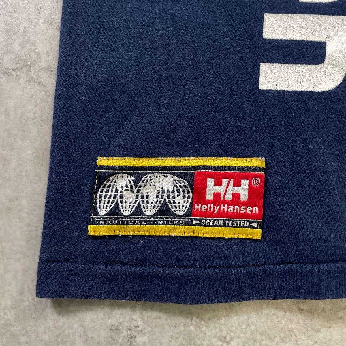 90年代 HELLY HANSEN ヘリーハンセン ビッグロゴプリントTシャツ メンズL相当 古着 90s VINTAGE ヴィンテージ 紺色【Tシャツ】/ネイビー