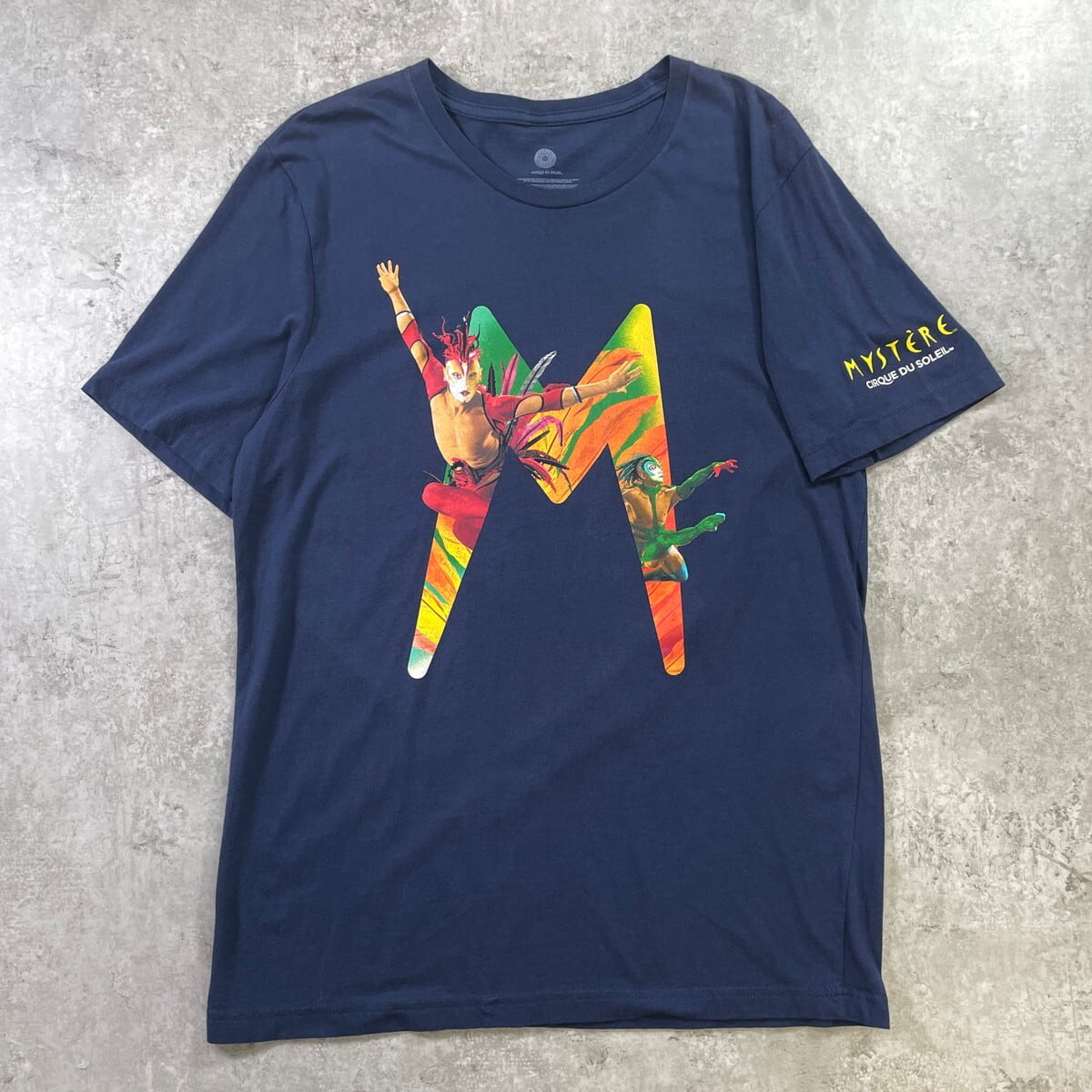 CIRQUE DU SOLEIL MYSTERE シルクドソレイユ ミスティア プリントTシャツ メンズL 古着 サーカス ショー ダークネイビー 紺色【Tシャツ】/ネイビー