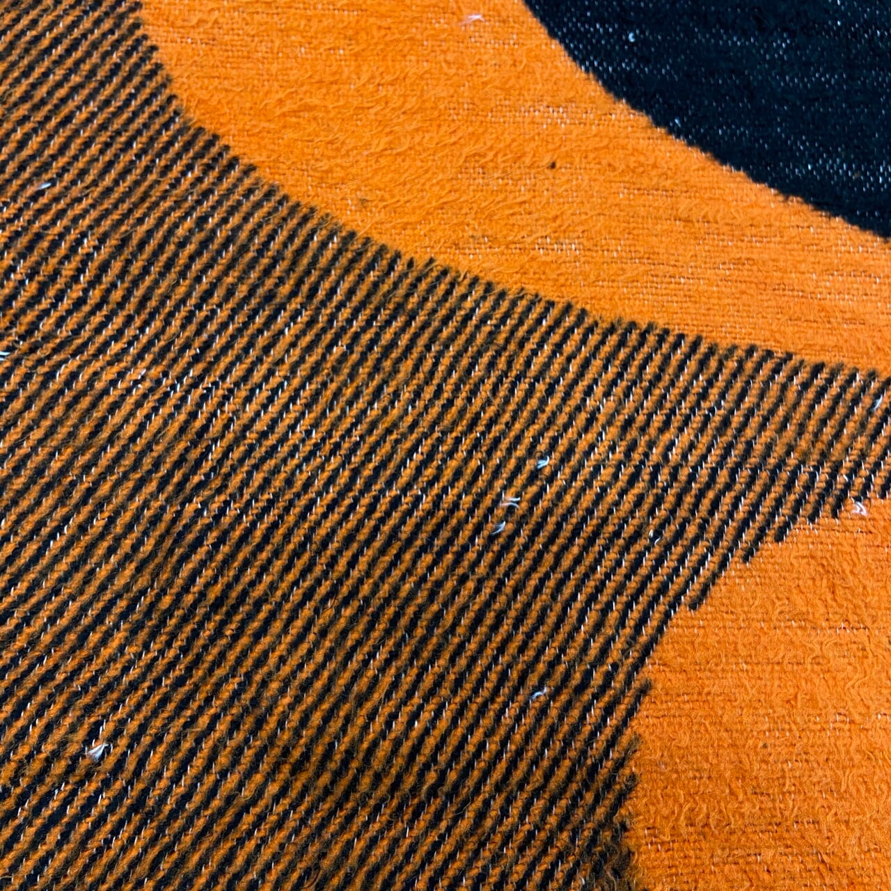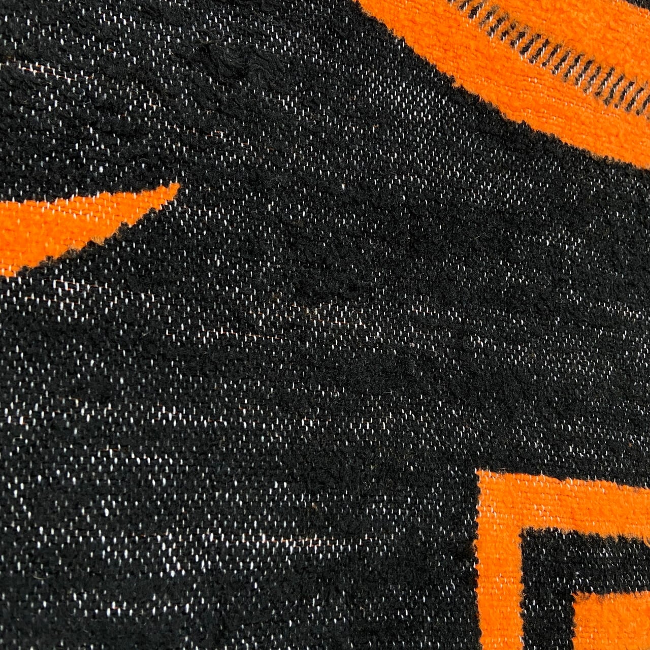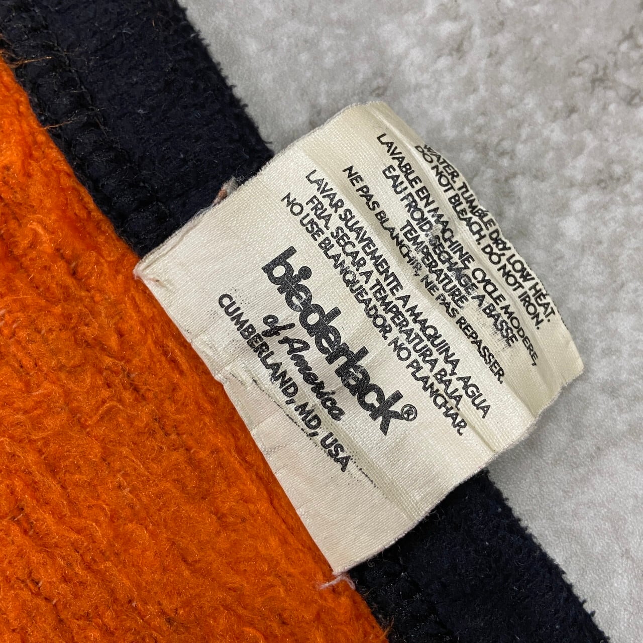 数あるハーレー・デザインの中でも圧倒的な人気を誇る「オレンジ・フレイム(炎)」の総柄。現行の薄手なフリースとは一線を画す、肉厚で重厚感のあるアクリル×ポリエステル混紡素材が特徴です。