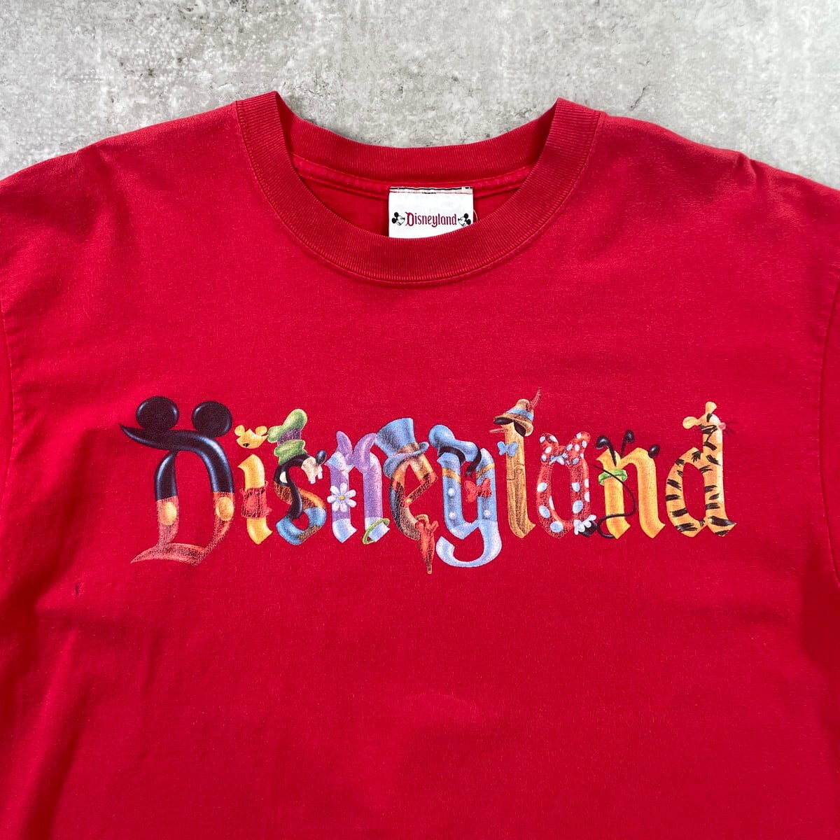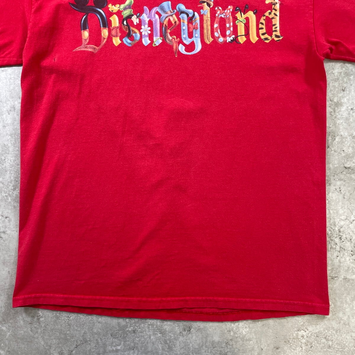 Disneyland ディズニーランド キャラクタープリントTシャツ メンズL 古着 ミッキーマウス ミニーマウス ドナルドダック 赤色【Tシャツ】/レッド