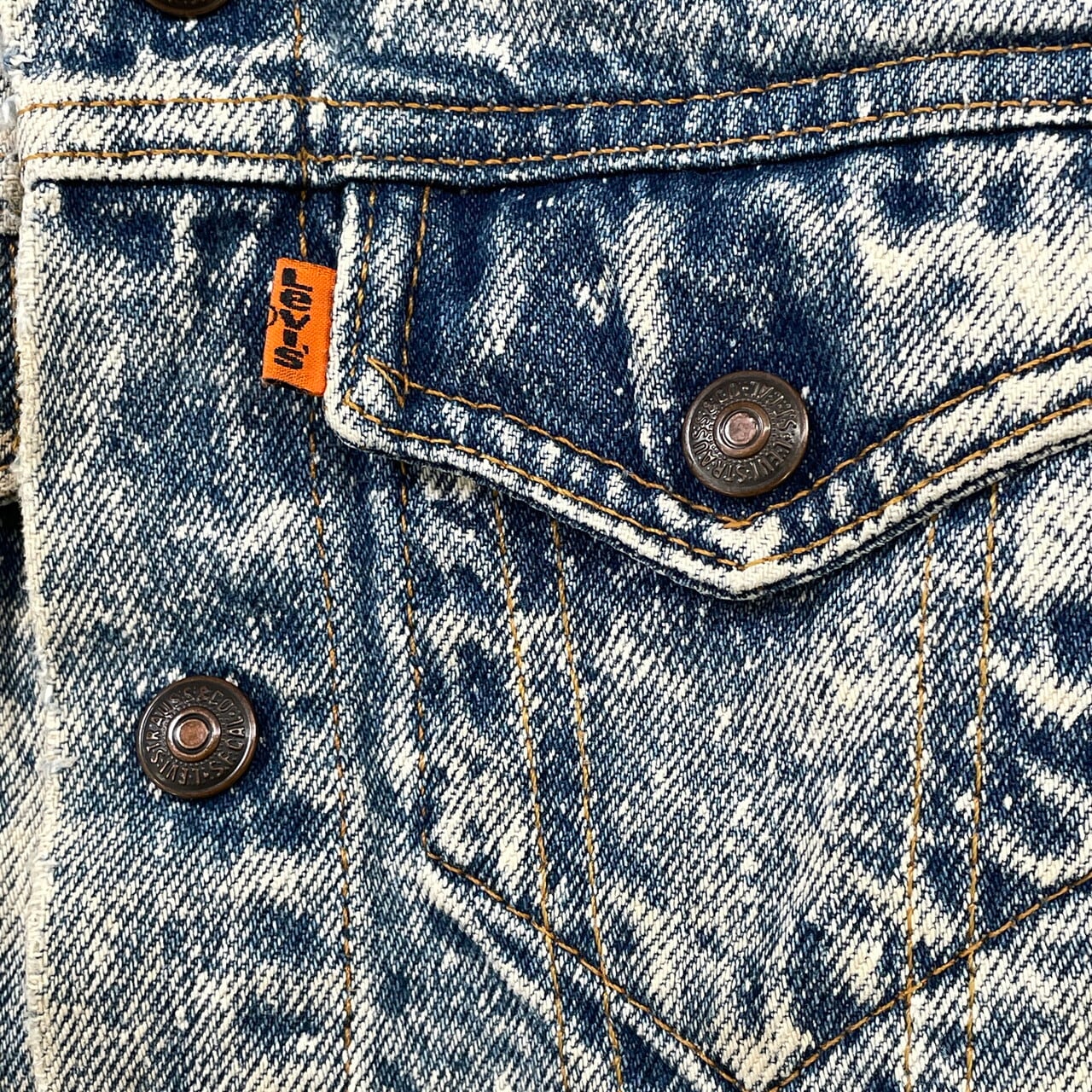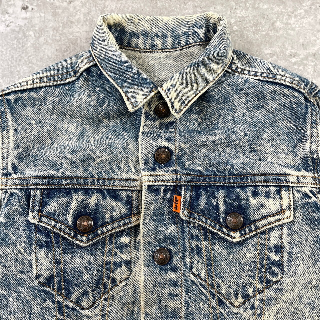 【kids】90年代 USA製 Little Levi's リトル リーバイス ケミカルウォッシュ デニムジャケット 6歳相当 サイズ110-120cm相当 古着 アシッドウォッシュ キッズ ベビー 子供服 90s VINTAGE ヴィンテージ アメカジ オレンジタブ スナップボタン 青色【デニムジャケット】/ブルー