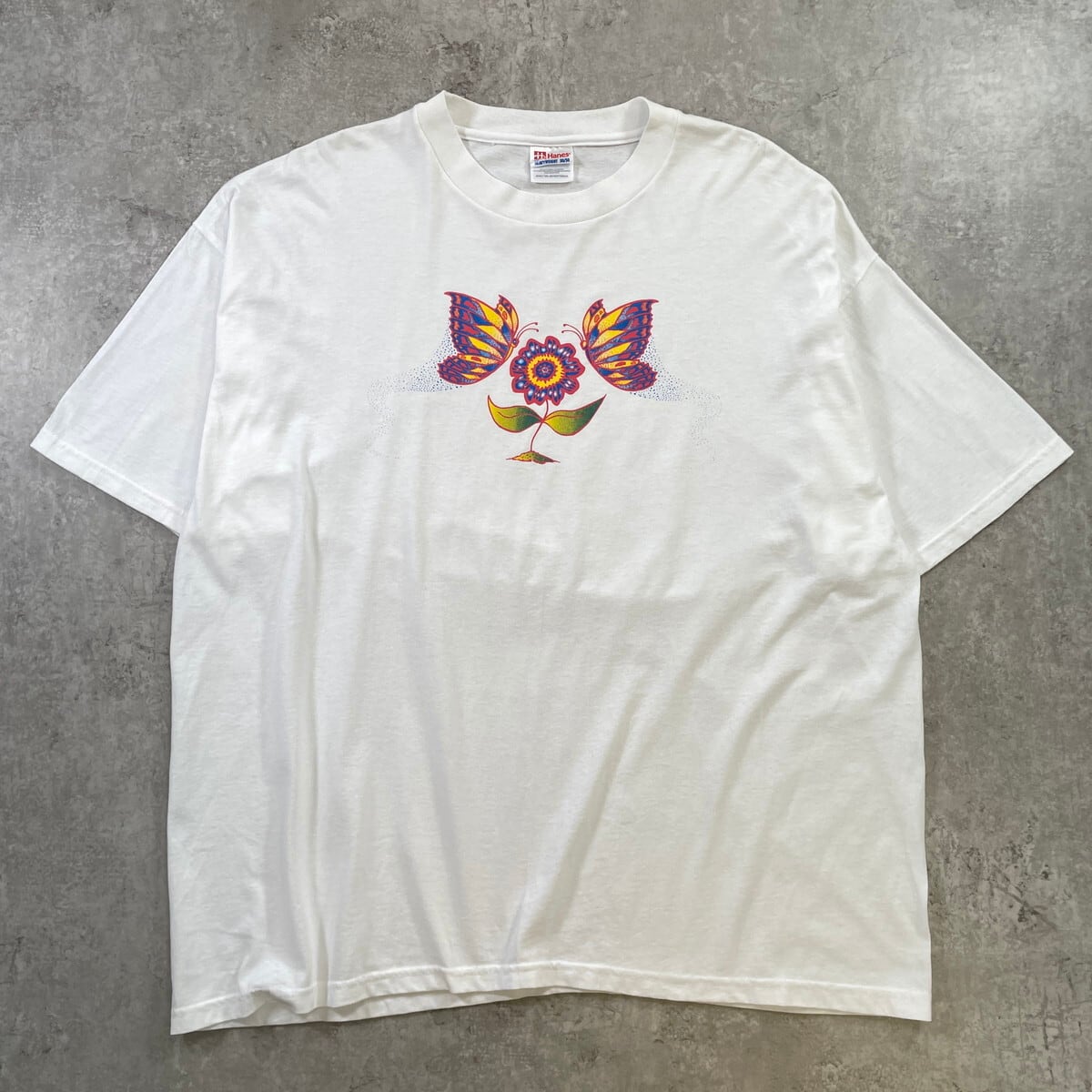 00年代 フラワー 蝶 アートプリントTシャツ メンズ2XL 古着 00s Y2K VINTAGE ヴィンテージ バタフライ 花 ART ビッグサイズ 大きいサイズ 白色【Tシャツ】/ホワイト