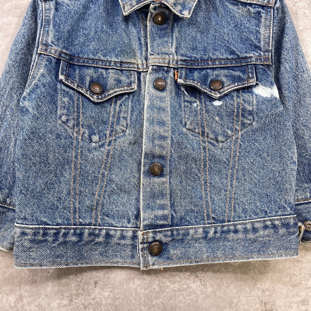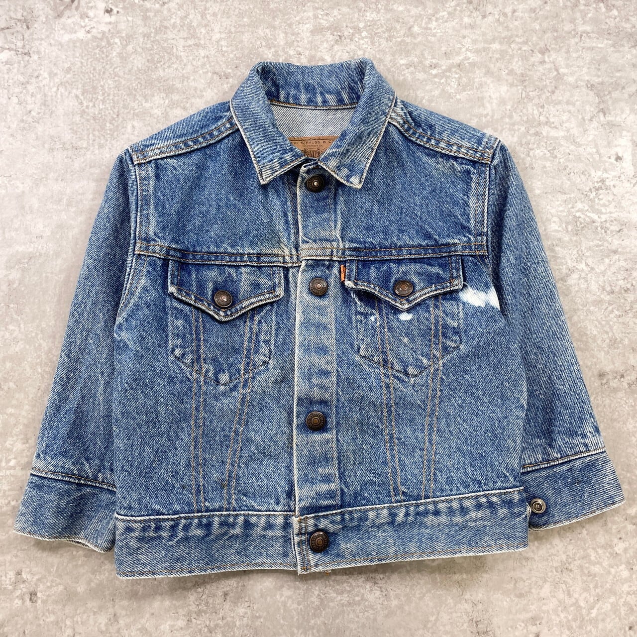 ■【kids】80年代 USA製 Little Levi's リトル リーバイス デニムジャケット 4歳相当 サイズ100-110cm相当 古着 キッズ ベビー 子供服 80s VINTAGE ヴィンテージ アメカジ オレンジタブ スナップボタン 青色【デニムジャケット】/ブルー