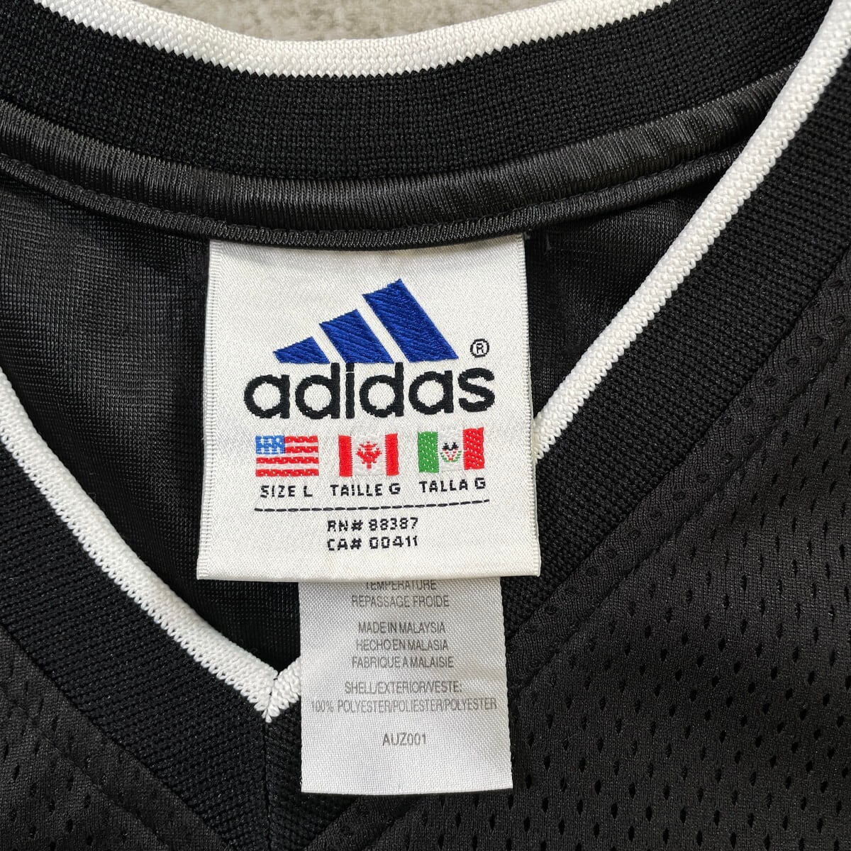 90年代 adidas バスケットボール ゲームシャツ タンクトップ メンズXL相当 古着 90s VINTAGE ヴィンテージ パフォーマンスロゴ ユニフォーム THREE STRIPES 3ストライプ ブラック 黒 ホワイト 白色 【ゲームシャツ】/ブラック