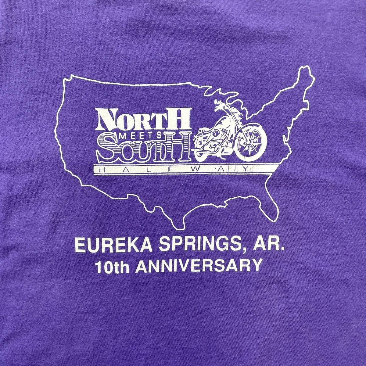 ■90年代 USA製 North Meets South Halfway ポケT バイカーイベント プリントTシャツ メンズ2XL 古着 90s VINTAGE ヴィンテージ シングルステッチ バイク ミミ付きポケット 紫【Tシャツ】/パープル