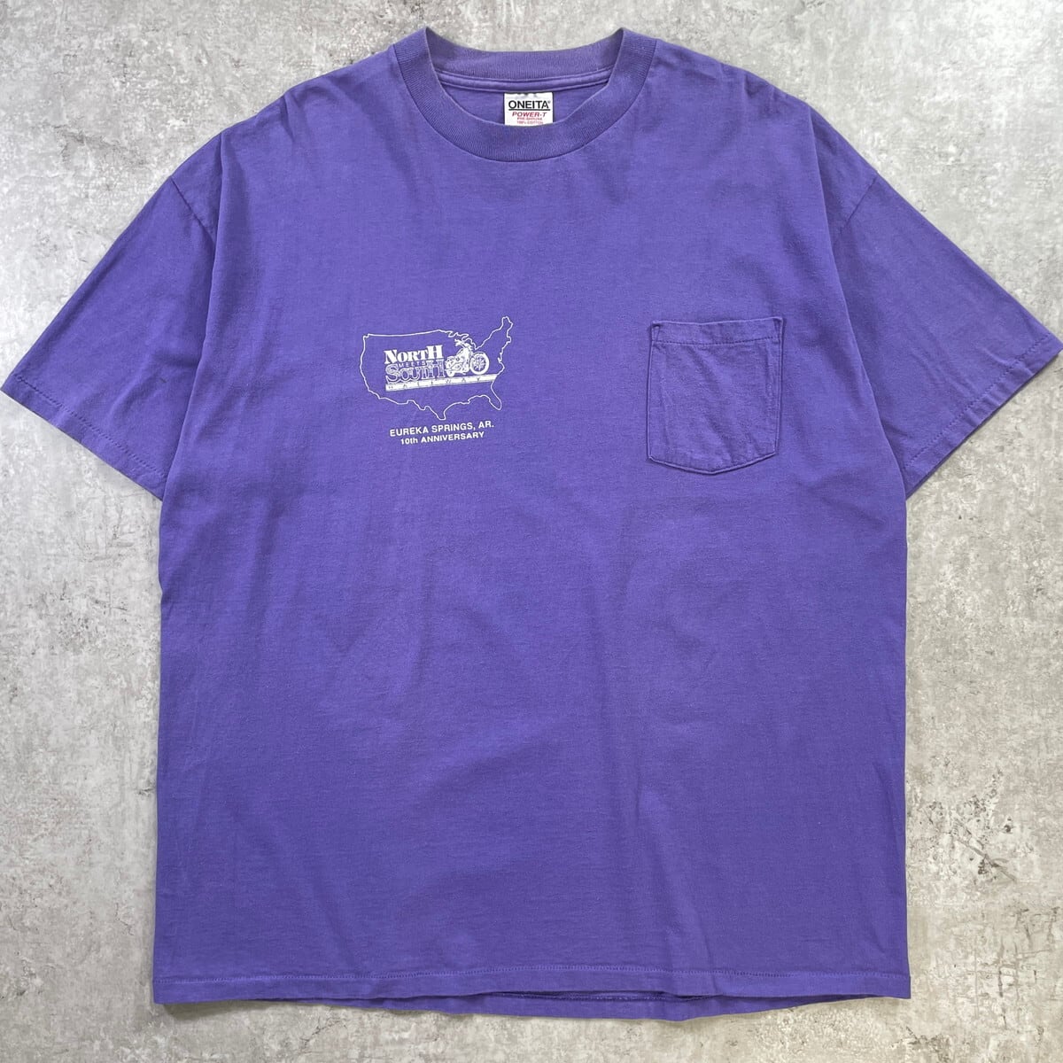 90年代 USA製 North Meets South Halfway ポケT バイカーイベント プリントTシャツ メンズ2XL 古着 90s VINTAGE ヴィンテージ シングルステッチ バイク ミミ付きポケット 紫【Tシャツ】/パープル