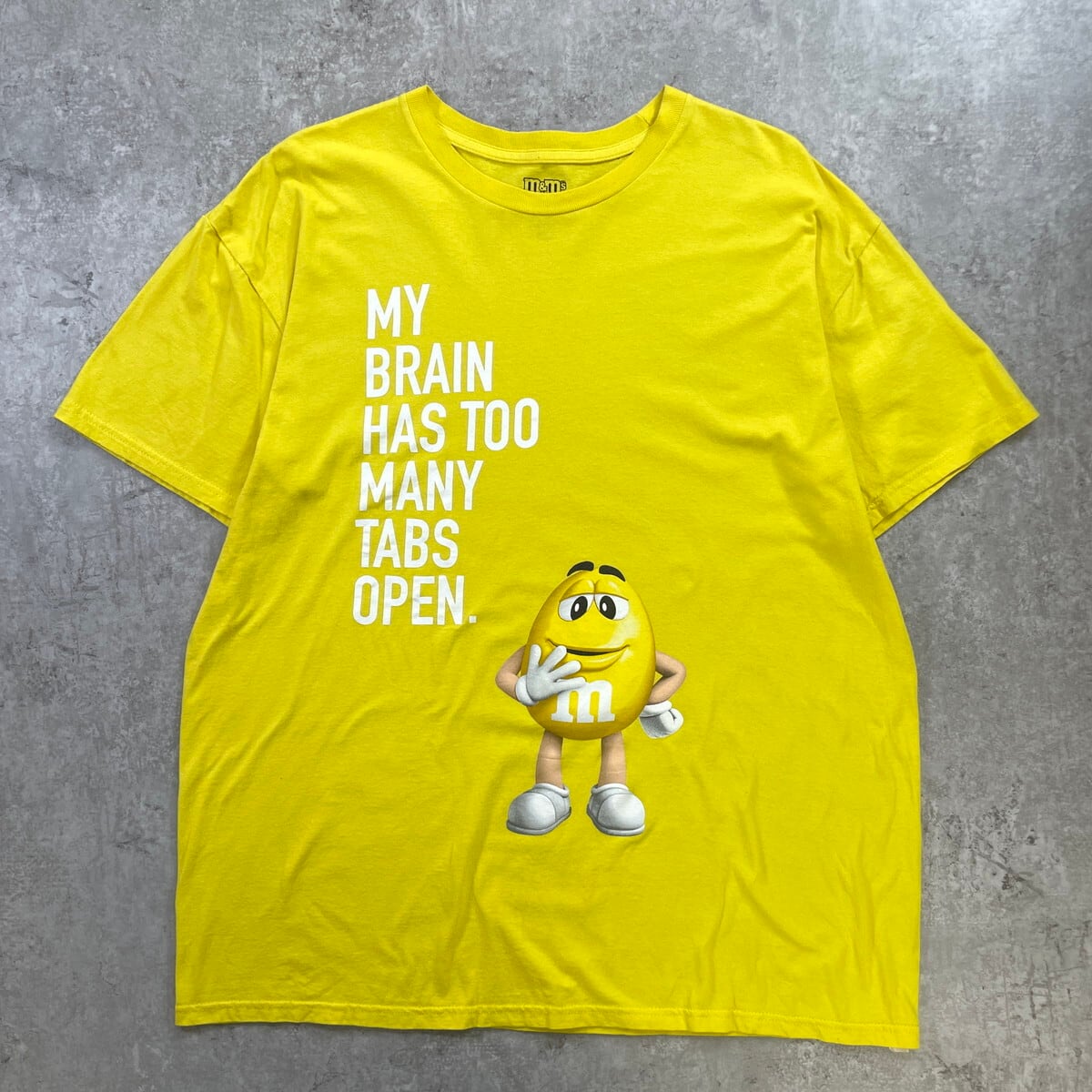m&m's エムアンドエムズ キャラクタープリントTシャツ メンズXL 古着 企業 チョコレート 黄色【Tシャツ】/イエロー